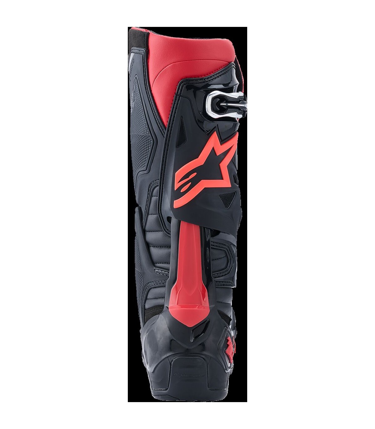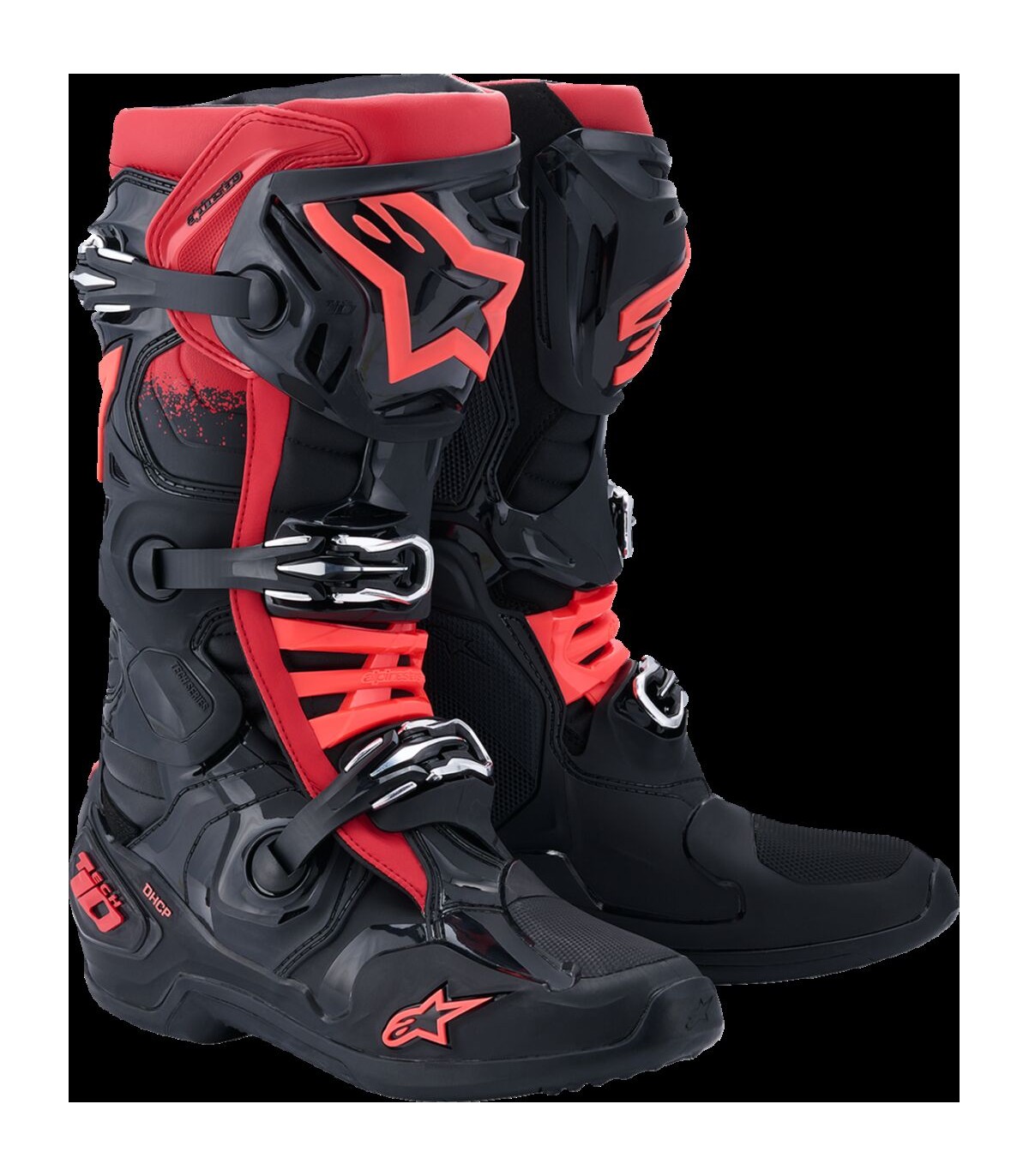 Bottes Tech 10Combine des connecteurs à dents doubles avant et arrièreAvec système de contrôle de la flexion complet et sans coutures, de la coque du pied jusqu’au protège-tibia« Flottement » libre entre la partie inférieure et la partie supérieure de la botteBras à double pivot asymétrique sur le cadre de la botteSystème de maintien de la cheville exclusif, développé sur la matière extérieure et permettant un mouvement naturel de la cheville, un contrôle de la compression verticale et une plus grande protection contre les impactsSystème de double pivot latéral et médian asymétrique pour une flexibilité et une précision optimisées permettant des mouvements à la fois indépendants et synchronisésSystème Blade arrière en polyuréthane thermoplastique (TPU) à double densité repensé, conçu pour éviter l’hyperextension tout en délivrant un contrôle de la flexion et une résistance aux impacts accrusProtège-talon à compression dynamique (DHCP), un accessoire de sécurité innovant qui comprend une section de talon pliable entièrement intégrée faite de mousse en polyester expansée destinée à amortir les gros chocs en cas d’accidentAvec bras de torsion médians et latéraux plus légers et reconçus de façon anatomiqueAvec le système de double pivot, la botte Tech 10 conserve sa forme tout en étant souple.Structure avec boucles low-profile pour une quantité de matériaux et un poids moindres et qui facilite l’enfilage des bottesLes inserts de flexion innovants sont compatibles avec le nouveau mécanisme de support flexible pour des performances ultimes.Protection en TPU et rembourrage amortissant au talon et aux chevillesFabriquée à partir d’un composé à double densité et faisant appel au système Blade arrièreLe protège-tibia à dissipation d’énergie arbore un nouveau design anatomique qui réduit la surface et le poids.Semelle entièrement repensée avec accroche sculptée brevetée qui améliore l’efficacité et l’adhérence sur le repose-pied et qui permet à la boue et à l’eau de s’écoulerLa semelle exclusive à double composé est parfaitement intégrée à la structure multidensité de la base du pied par le biais du support incorporé.Les boucles minces sont munies de fermoirs résistant aux chocs forgés à froid pour plus de précision et de robustesse.Le système de verrouillage se compose d’une contre-fermeture, d’une sécurité à double fermeture et d’un système d’attache/de déverrouillage rapide auto-alignant et à mémorisation ; il assure un verrouillage simple et précis, synonyme de performances et deLes semelles et les boucles peuvent facilement être remplacées.Le châssis allie microfibre légère avancée et coque en TPU résistant à l’abrasion et aux impacts.La coque du pied regroupe sous la forme d’une pièce unique et légère cinq composés différents qui confèrent de la résistance sans nuire à la flexibilité ni à l’intégrité structurelle.Le pourtour en microfibre souple évite que trop d’eau ou de saletés ne pénètrent.La doublure en polyester avec mousse à cellules ouvertes 3D intègre du daim antidérapant au niveau du talon, afin de mieux maintenir le pied à l’intérieur de la botte.
