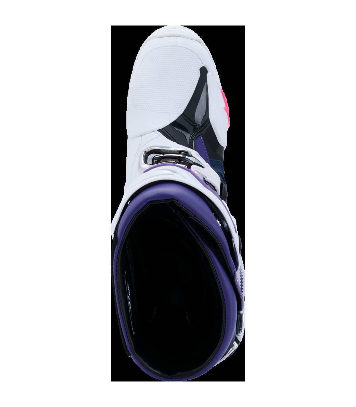 Bottes Tech 10Combine des connecteurs à dents doubles avant et arrièreAvec système de contrôle de la flexion complet et sans coutures, de la coque du pied jusqu’au protège-tibia« Flottement » libre entre la partie inférieure et la partie supérieure de la botteBras à double pivot asymétrique sur le cadre de la botteSystème de maintien de la cheville exclusif, développé sur la matière extérieure et permettant un mouvement naturel de la cheville, un contrôle de la compression verticale et une plus grande protection contre les impactsSystème de double pivot latéral et médian asymétrique pour une flexibilité et une précision optimisées permettant des mouvements à la fois indépendants et synchronisésSystème Blade arrière en polyuréthane thermoplastique (TPU) à double densité repensé, conçu pour éviter l’hyperextension tout en délivrant un contrôle de la flexion et une résistance aux impacts accrusProtège-talon à compression dynamique (DHCP), un accessoire de sécurité innovant qui comprend une section de talon pliable entièrement intégrée faite de mousse en polyester expansée destinée à amortir les gros chocs en cas d’accidentAvec bras de torsion médians et latéraux plus légers et reconçus de façon anatomiqueAvec le système de double pivot, la botte Tech 10 conserve sa forme tout en étant souple.Structure avec boucles low-profile pour une quantité de matériaux et un poids moindres et qui facilite l’enfilage des bottesLes inserts de flexion innovants sont compatibles avec le nouveau mécanisme de support flexible pour des performances ultimes.Protection en TPU et rembourrage amortissant au talon et aux chevillesFabriquée à partir d’un composé à double densité et faisant appel au système Blade arrièreLe protège-tibia à dissipation d’énergie arbore un nouveau design anatomique qui réduit la surface et le poids.Semelle entièrement repensée avec accroche sculptée brevetée qui améliore l’efficacité et l’adhérence sur le repose-pied et qui permet à la boue et à l’eau de s’écoulerLa semelle exclusive à double composé est parfaitement intégrée à la structure multidensité de la base du pied par le biais du support incorporé.Les boucles minces sont munies de fermoirs résistant aux chocs forgés à froid pour plus de précision et de robustesse.Le système de verrouillage se compose d’une contre-fermeture, d’une sécurité à double fermeture et d’un système d’attache/de déverrouillage rapide auto-alignant et à mémorisation ; il assure un verrouillage simple et précis, synonyme de performances et deLes semelles et les boucles peuvent facilement être remplacées.Le châssis allie microfibre légère avancée et coque en TPU résistant à l’abrasion et aux impacts.La coque du pied regroupe sous la forme d’une pièce unique et légère cinq composés différents qui confèrent de la résistance sans nuire à la flexibilité ni à l’intégrité structurelle.Le pourtour en microfibre souple évite que trop d’eau ou de saletés ne pénètrent.La doublure en polyester avec mousse à cellules ouvertes 3D intègre du daim antidérapant au niveau du talon, afin de mieux maintenir le pied à l’intérieur de la botte.