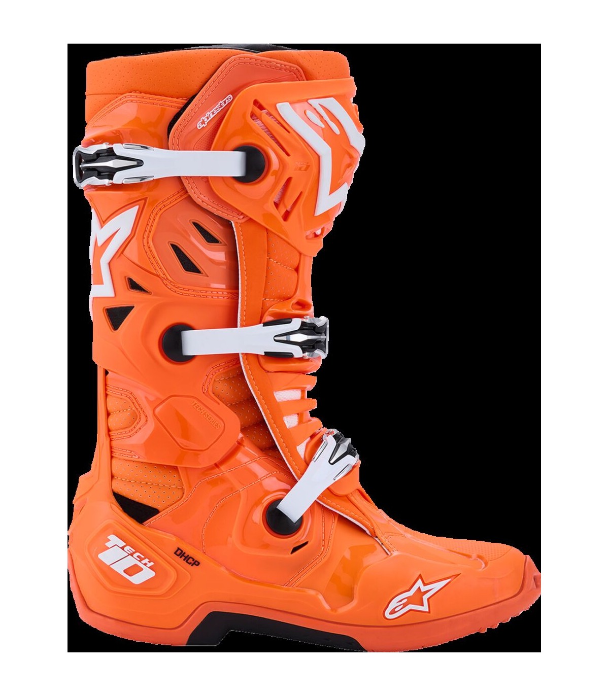 Bottes superventilées Tech 10Corps en microfibre perforée très respirante avec rembourrage interne percéRembourrage perforé permettant une ventilation et un flux d’air élevésÀ l’utilisation de polyuréthane thermoplastique (TPU) s’ajoutent des zones de ventilation et une nouvelle semelle à système de flux d’air pour une meilleure respirabilité et une aération exceptionnelle.Deux grandes ouvertures d’entrée à l’avant de la botte complétées par des sorties à l’arrière qui optimisent les niveaux de flux d’air et d’échange thermiqueLa semelle intérieure 3D Higher Spring crée un système de refroidissement efficace grâce à ses canaux d’air internes, générant à la fois une ventilation optimale et un effet d’amortissement en vue d’obtenir un haut degré d’aisance.Protège-tibias au design évolutif, avec orifices de ventilation placés stratégiquement pour permettre une meilleure aération et diminuer le poids sans altérer aucunement les propriétés de protection contre les chocsLes aérations sur le côté du mollet en polyuréthane (PU) et l’insert en maille respirante améliorent le confort et réduisent la fatigue sur les trajets aussi bien courts que longs.Le nouveau système performant de contrôle du mouvement à double pivot présente les caractéristiques suivantes : un mécanisme de double pivot médian et latéral pour une flexibilité et un contrôle de la précision améliorés, un mécanisme de réglage de la fleCo-injectés pour plus de solidité et de structure, les panneaux en TPU exclusifs délivrent une adhérence et une durabilité sans précédent.Semelle entièrement repensée avec accroche sculptée brevetée qui améliore les performances du repose-pied, de l'accroche et qui permet à la boue et à l'eau de s'écouler La semelle exclusive à double composé est parfaitement intégrée à la structure de la b Remplacement facile. Alpinestars propose un service complet de remplacement de semelles et de réparation de bottes.Surface d’appui perforée pour un refroidissement supplémentaireL’intérieur de la botte est en maille, ce qui favorise un flux d’air optimal et réduit le poids, et le fond en matière technique est perforé de façon à encore accroître le refroidissement.Optimisé anatomiquement pour le gain de poids et l'ergonomie, le nouveau système de fermeture mécanique à boucle comporte un composé de nylon et fibre de verre pour une durabilité et une résistance accrues. Le nouveau système de verrouillage à boucles au La tige innovante associe de la microfibre légère de pointe et une coque en TPU résistante à l’abrasion et aux impacts.La zone du tibia présente un système Blade en TPU conçu afin d’éviter l’hyperextension frontale et d’offrir ainsi un plus grand contrôle de la flexibilité.Le pourtour en microfibre souple limite l’entrée excessive d’eau et de saletés, tandis que la doublure en maille 3D assure une meilleure circulation de l’air et un meilleur confort.La doublure en maille 3D intègre du daim antidérapant au niveau du talon pour maintenir le pied à l’intérieur de la botte.La protection frontale comporte un double système de verrouillage avec un rabat interne en microfibre, ainsi que des fermetures à scratch pour un ajustement précis, le tout solidement fixé par une boucle légère, facile à manipuler et microajustable. La coque du pied intègre une protection du talon et des orteils et est très résistante à l'abrasion et aux chocs tout en augmentant la durabilité globale de la botte. L’extérieur du pied comprend également une tige pour le soutien et l’intégrité structurLe protège-talon à compression dynamique (DHCP) breveté est intégré au châssis unique et léger de Tech 10. Il s'agit d'un dispositif de sécurité innovant qui comprend une zone de talon repliable entièrement intégrée avec une mousse en polyester expansée qLa protection de mollet profilée s’enroule ergonomiquement autour de l’arrière de la jambe et est construite à partir d’un système Blade arrière avec composé à double densité pour offrir un amortissement progressif des forces de torsion excessives.