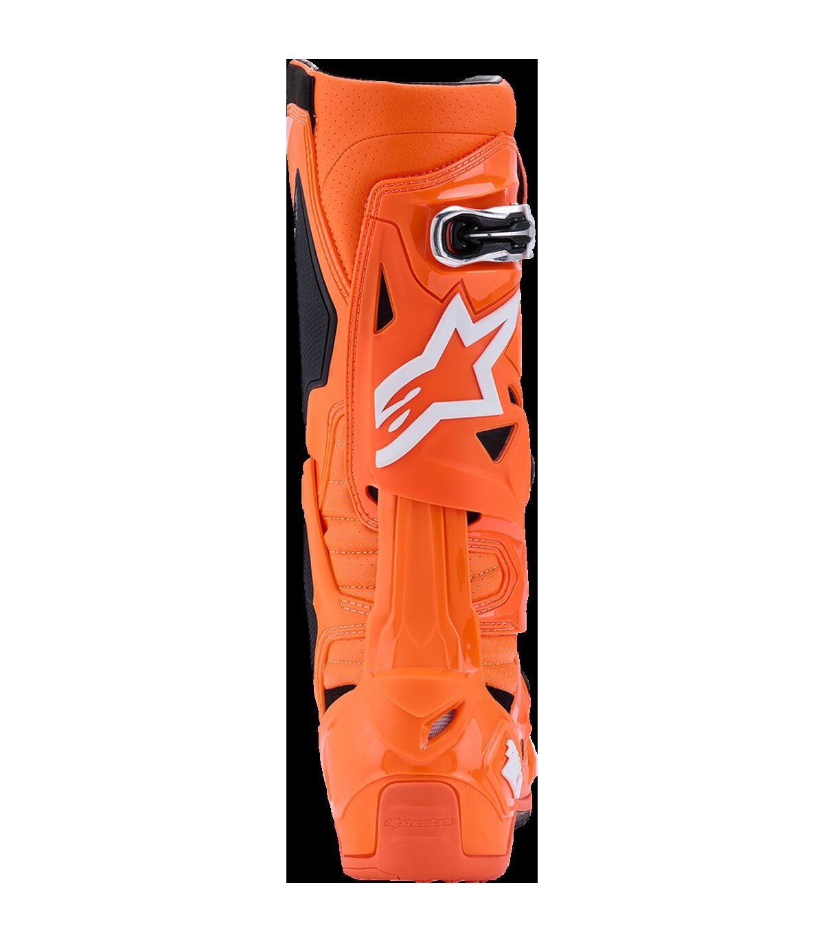 Bottes superventilées Tech 10Corps en microfibre perforée très respirante avec rembourrage interne percéRembourrage perforé permettant une ventilation et un flux d’air élevésÀ l’utilisation de polyuréthane thermoplastique (TPU) s’ajoutent des zones de ventilation et une nouvelle semelle à système de flux d’air pour une meilleure respirabilité et une aération exceptionnelle.Deux grandes ouvertures d’entrée à l’avant de la botte complétées par des sorties à l’arrière qui optimisent les niveaux de flux d’air et d’échange thermiqueLa semelle intérieure 3D Higher Spring crée un système de refroidissement efficace grâce à ses canaux d’air internes, générant à la fois une ventilation optimale et un effet d’amortissement en vue d’obtenir un haut degré d’aisance.Protège-tibias au design évolutif, avec orifices de ventilation placés stratégiquement pour permettre une meilleure aération et diminuer le poids sans altérer aucunement les propriétés de protection contre les chocsLes aérations sur le côté du mollet en polyuréthane (PU) et l’insert en maille respirante améliorent le confort et réduisent la fatigue sur les trajets aussi bien courts que longs.Le nouveau système performant de contrôle du mouvement à double pivot présente les caractéristiques suivantes : un mécanisme de double pivot médian et latéral pour une flexibilité et un contrôle de la précision améliorés, un mécanisme de réglage de la fleCo-injectés pour plus de solidité et de structure, les panneaux en TPU exclusifs délivrent une adhérence et une durabilité sans précédent.Semelle entièrement repensée avec accroche sculptée brevetée qui améliore les performances du repose-pied, de l'accroche et qui permet à la boue et à l'eau de s'écouler La semelle exclusive à double composé est parfaitement intégrée à la structure de la b Remplacement facile. Alpinestars propose un service complet de remplacement de semelles et de réparation de bottes.Surface d’appui perforée pour un refroidissement supplémentaireL’intérieur de la botte est en maille, ce qui favorise un flux d’air optimal et réduit le poids, et le fond en matière technique est perforé de façon à encore accroître le refroidissement.Optimisé anatomiquement pour le gain de poids et l'ergonomie, le nouveau système de fermeture mécanique à boucle comporte un composé de nylon et fibre de verre pour une durabilité et une résistance accrues. Le nouveau système de verrouillage à boucles au La tige innovante associe de la microfibre légère de pointe et une coque en TPU résistante à l’abrasion et aux impacts.La zone du tibia présente un système Blade en TPU conçu afin d’éviter l’hyperextension frontale et d’offrir ainsi un plus grand contrôle de la flexibilité.Le pourtour en microfibre souple limite l’entrée excessive d’eau et de saletés, tandis que la doublure en maille 3D assure une meilleure circulation de l’air et un meilleur confort.La doublure en maille 3D intègre du daim antidérapant au niveau du talon pour maintenir le pied à l’intérieur de la botte.La protection frontale comporte un double système de verrouillage avec un rabat interne en microfibre, ainsi que des fermetures à scratch pour un ajustement précis, le tout solidement fixé par une boucle légère, facile à manipuler et microajustable. La coque du pied intègre une protection du talon et des orteils et est très résistante à l'abrasion et aux chocs tout en augmentant la durabilité globale de la botte. L’extérieur du pied comprend également une tige pour le soutien et l’intégrité structurLe protège-talon à compression dynamique (DHCP) breveté est intégré au châssis unique et léger de Tech 10. Il s'agit d'un dispositif de sécurité innovant qui comprend une zone de talon repliable entièrement intégrée avec une mousse en polyester expansée qLa protection de mollet profilée s’enroule ergonomiquement autour de l’arrière de la jambe et est construite à partir d’un système Blade arrière avec composé à double densité pour offrir un amortissement progressif des forces de torsion excessives.
