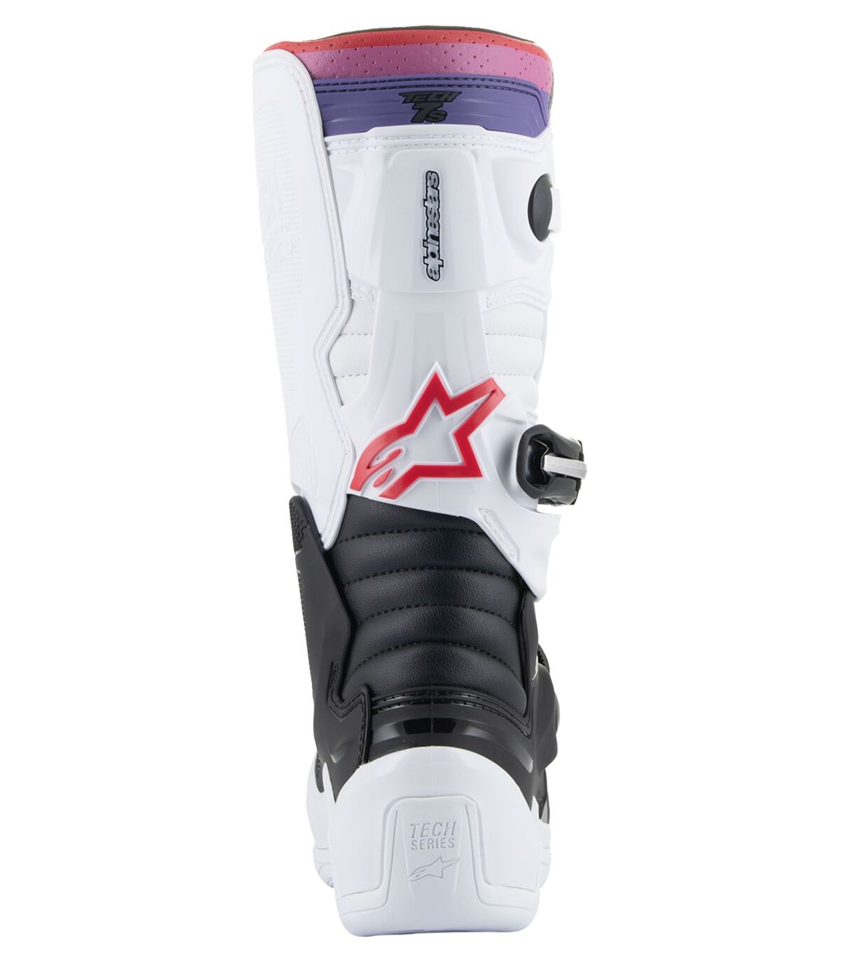 Bottes enfant Tech 7STailles spécialement conçues pour enfants et/ou pilotes de petite taillePartie supérieure en microfibre renforcée avec du polyuréthane (PU) pour plus de flexibilité et de résistance à l’abrasion, à l'eau avec une réduction du poidsLe matériel garantit un bon ajustement, est facile à entretenir et à nettoyerLe protège-tibia profilé est injecté de polyuréthane thermoplastique (TPU) de masse molaire très élevée afin d’obtenir une excellente résistance aux chocs et à l’abrasion.Sur le côté médian figure un panneau en TPU spécialement sculpté afin d’obtenir une accroche optimale avec la moto et une meilleure résistance à la chaleur et à l’abrasion.Coque du pied à double composant injecté en une seule pièce avec protection pour les orteils rigide co-injectée et tige en acier intégréeLa coque est extrêmement résistante à l'abrasion et aux chocs et donne à la botte plus de durabilité tout en améliorant le profilage de la boteFlexion excellente grâce au système de pivot médian et latéral low-profile qui offre mouvement et supportLes zones de flexibilité en accordéon du coup-de-pied et du talon d’Achille sont conçues afin d’offrir un contrôle et un support supérieurLe pourtour étendu en microfibre limite l’entrée excessive d’eau et de saletésLa semelle en composé est totalement intégrée dans la structure de la base offrant plus de durabilité, de sensation et un patron d’accroche en caoutchouc à performance élevéeLa semelle peut être remplacéeRenfort en mousse poly souple aux chevilles et au col pour plus de confort et absorption des chocsSemelle intérieure anatomique et amovible offrant plus de confort et de support qui garantit une distribution homogène du poidsMaille textile 3D avec mousse à cellules ouvertes afin d’obtenir plus de confort et une meilleure circulation de l'airLe système de fermeture à boucle intègre des bras de boucle en polymère et en fibre de verre et des fermetures de support en aluminium résistantes aux chocs pour plus de durabilité et une réduction du poidsLe système à boucle est doté d’un réglage de longueur de boucle à mémoire avec un système d'attache/détachage rapide et auto-alignant pour une fermeture plus facile et précise offrant une meilleure performance et sécurité pendant la conduiteToutes les boucles peuvent être remplacées
