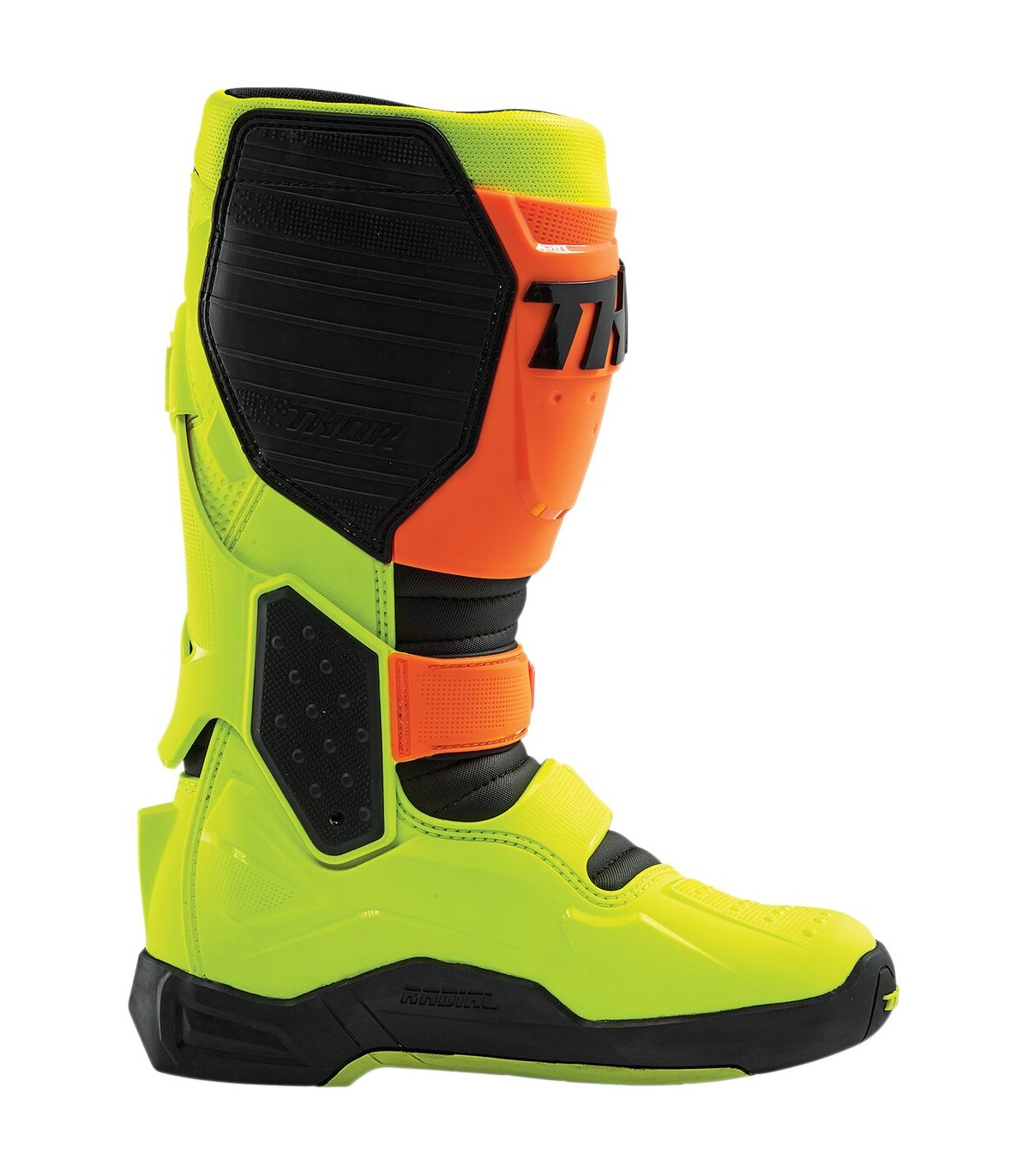 Semelles extérieures de rechange pour bottes RadialDoublure respirante pour une meilleure aération et rembourrage en EVA pour plus de confortInserts remplaçables sur la semelle extérieure pour prolonger la durée de vie de la botteSemelle extérieure unidirectionnelle renforcée d'une tige en acier pour plus de rigiditéPointe des pieds adaptée à un passage de vitesse souplePanneaux superposés entièrement synthétiques au niveau des mollets pour une grande résistance et une accroche optimalePlaque médiane anti-abrasion moulée par injection avec protection sélecteur intégréeDes sangles ajustables permettent un maintien adapté et sûrSystème de fermeture anti-vibrations moulé par injectionUne charnière radiale donne plus de structure et limite une extension trop importanteComposants précourbés et moulés par injection