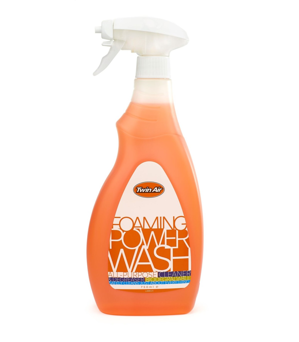 Nettoyant Foaming Power WashProduit nettoyant Foaming Power Wash de Twin Air en spray de 750 mlSans danger pour la plupart des surfaces (plastique, aluminium, fibre de carbone, peinture, caoutchouc, métal, etc.)Le produit Foaming Power Wash de Twin Air est un nettoyant indispensable, biodégradable et à pénétration profonde, formulé pour faire disparaître la saleté, les résidus et la graisse dans votre garage, votre atelier et votre maison.