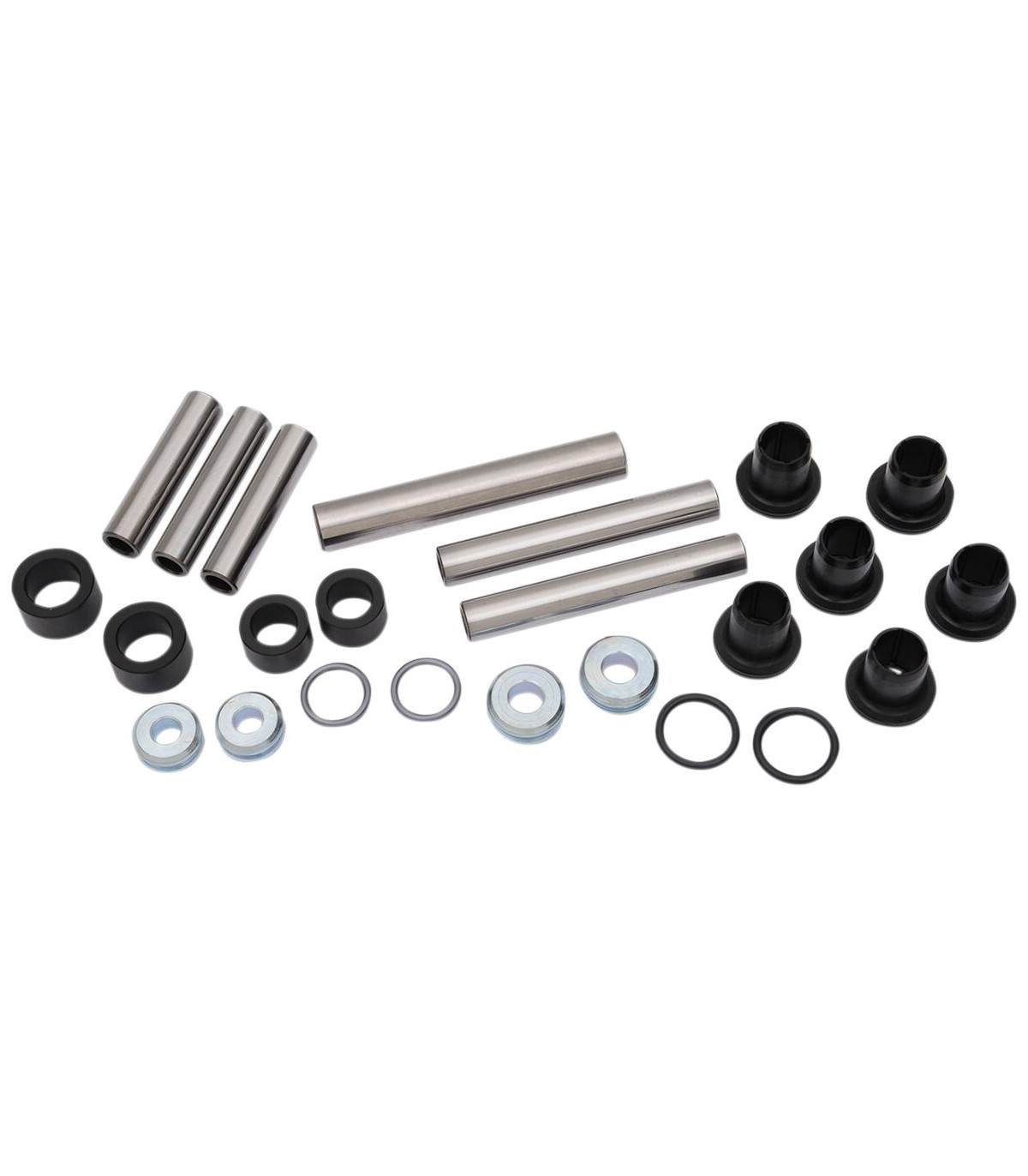 Kit d’amortisseur arrière indépendantKit rentable qui contient l’ensemble des roulements, des bagues, des joints, des entretoises et des autres composants nécessaires pour réparer les triangles de suspension de l’arrière (inférieur et supérieur), ainsi que l’articulationDeux kits nécessaires par véhicule