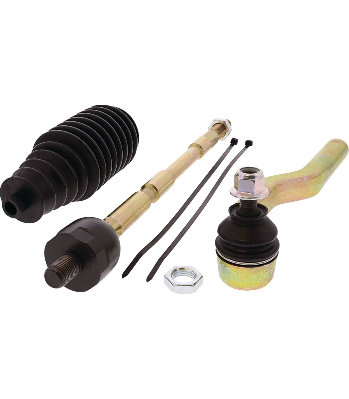 Kit de rotule de directionChaque kit contient deux rotule de direction de qualité - l’une avec un filetage de droite et l’autre avec un filetage de gauche - ainsi que des goupilles et des contre-écrousLes rotules sont renforcées, et elles peuvent être placées directement, tout en coûtant bien moins cher que les pièces d’origineVendues par kits pour une rotule ; il faut deux kits par véhicule
