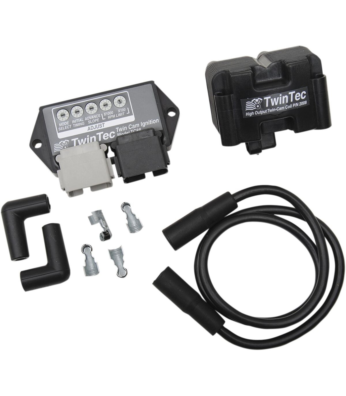 Kit d’allumageLes modules disposent de deux types de courbe d'avance qui peuvent être réglées pour convenir aux moteurs d’origine et aux moteurs modifiésL'unité dispose de cinq interrupteurs rotatifs pour régler le calage, paramétrer la courbe d'avance et limiter les tours par minuteLimiteur de tours numérique (par incréments de 100 tours par minute)Mode multi-étincelles qui peut être sélectionné pour un démarrage rapide et un bon régime de croisièreSorties de bobines protégées contre les court-circuitsFabrication aux États-Unis.Les modèles 00-01 nécessitent la modification du support de bobine.