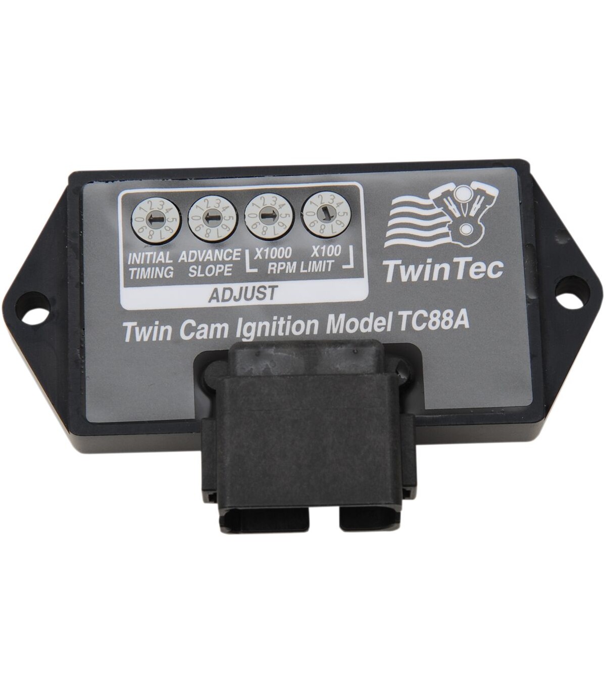 Module d’allumage à connecterAvec deux types de courbe d'avance qui peuvent être réglées pour convenir aux moteurs d’origine et aux moteurs modifiésMode multi-étincelles qui peut être sélectionné pour un démarrage rapide et un bon régime de croisièreCinq interrupteurs rotatifs pour sélectionner le mode, régler le calage, paramétrer la courbe d'avance et limiter les tours par minutes (par incréments de 100 tours par minute)Sorties de bobines protégées contre les court-circuitsNécessitent des bobines d’origine avec une résistance sur le bobinage primaire inférieur à 1 ohm et un cœur en spirale basse résistance ou