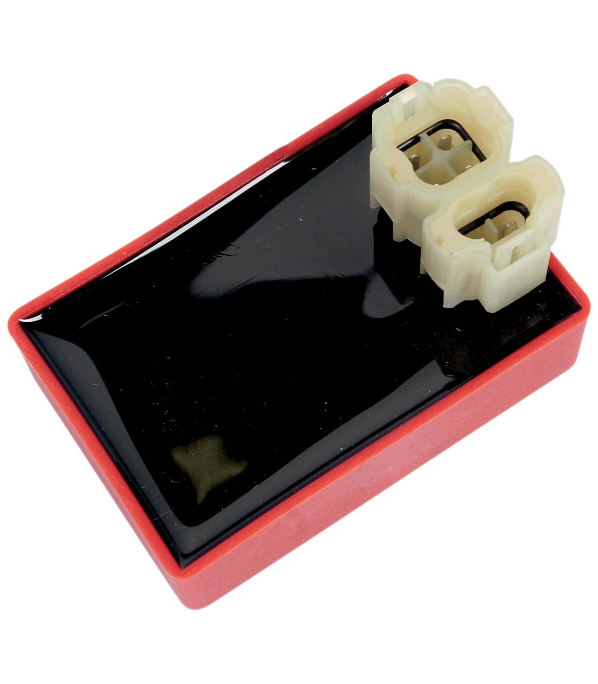 Boitier CDI série Hot ShotLes améliorations du boîtier CDI comprennent un ou plusieurs éléments parmi ceux-ci : étincelles multiples, augmentation de la ligne rouge de tours/minute ou modification des courbes d'avance de l’allumage La courbe d'avance permet au quad d’avoir un régime avec plus de tours/minute, et un rythme plus rapidePeut également être utilisé pour remplacer le boîtier CDI défectueux sur les machines de sérieRégime accru de 1 000 tr/min au-delà de la ligne rouge