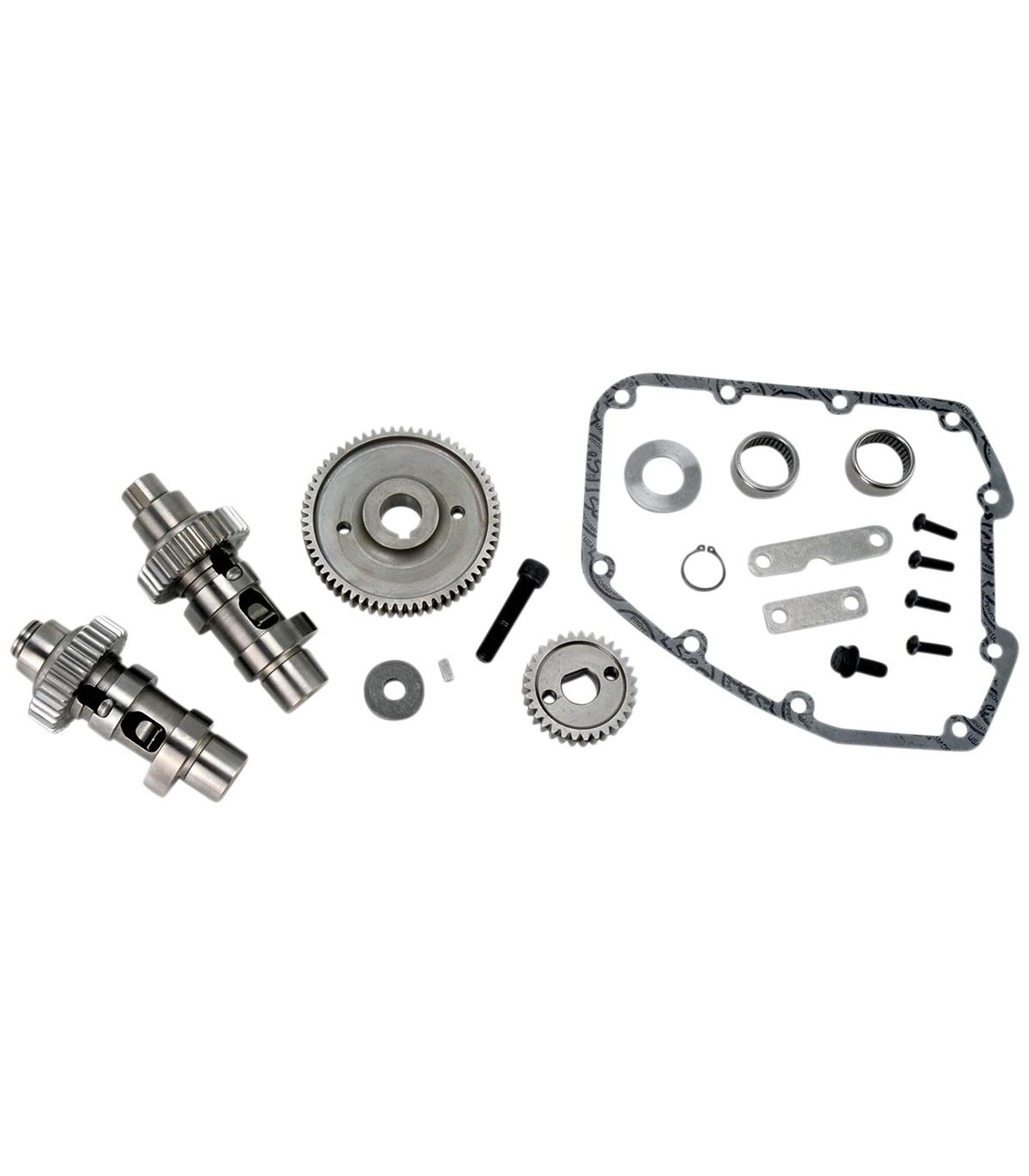 583 Easy Start Camshaft KitAllows for easy start by initially reducing crank compression, but once the engine starts and rpm increases, the compression release lobe is centrifugally retracted and the engine runs normally, with full compression, and without any loss in performanceOptimiized for use as a great overall camshaft for Softail and Dyna, but can be used in any Big TwinProvides strong low-end torque and horsepowerStrongest from 1500 rpm to 5000 rpm in Softail and Dyna modelsBolt-inIncludes camshafts, gearcover gasket, bearings, retaining ring, o-ring, threat lock and instructions Made in the USAInstaller must check coil bind, valve-to-valve clearance and valve-to-piston clearance.Not for models with OEM compression releases.Not recommended for compression ratios of 10.0:1 or greater.Includes 4-gear set.