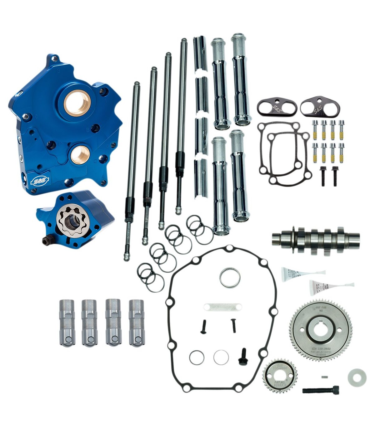 Kit de carter moteur pour M8Toutes les pièces de chaque kit sont compatibles entre elles pour garantir une qualité, un ajustement, une finition et des performances optimumLa pompe à huile et la platine de support d'arbre à cames sont usinées avec précision à partir d'aluminium taillé dans la masse avec une finition anodisée bleueBouchons amovibles pour un entretien plus facileSections de récupération indépendantes pour le bas-moteur et pour le carter distributionFiltre à débris dans les deux détecteurs de récupérationCapacité de débit d’huile accrue côté alimentation et côté récupérationAimant dans le carter de distribution pour prévenir la pénétration de débris dans la pompe à huilePoussoirs S&S de qualité supérieureLes manchettes de poussoir en aluminium taillé dans la masse ont un revêtement noir à anodisation dure et sont plus résistants que les modèles d'origine afin d'éliminer toute déformationFabrication aux États-UnisLe modèle 465 est une came de couple parfaite pour les applications Touring.