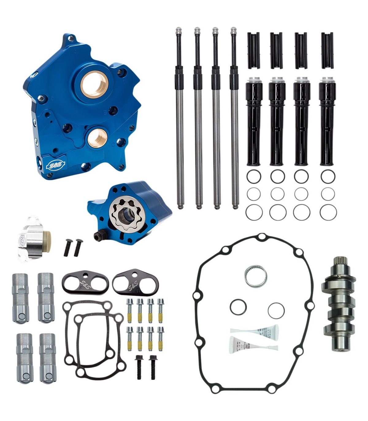 Kit de carter moteur pour M8Pompe à huile/Platine de support d'arbre à cames :Finition anodisée bleueBouchons amovibles pour un entretien plus facileSections de récupération indépendantes pour le bas-moteur et le carter de distributionCapacité de débit accrue côté alimentation et côté récupérationTiges poussoir :tiges poussoirs QuickeePoussoirs :Poussoirs de précision S&SManchettes de poussoir :Revêtement noir à anodisation dureFabrication en aluminium taillé dans la massePlus de résistance que le matériau d'origine, élimine toute déformationDistribution :Fabrication aux États-UnisLe modèle 475 est une came d’une puissance de 100 chevaux.
