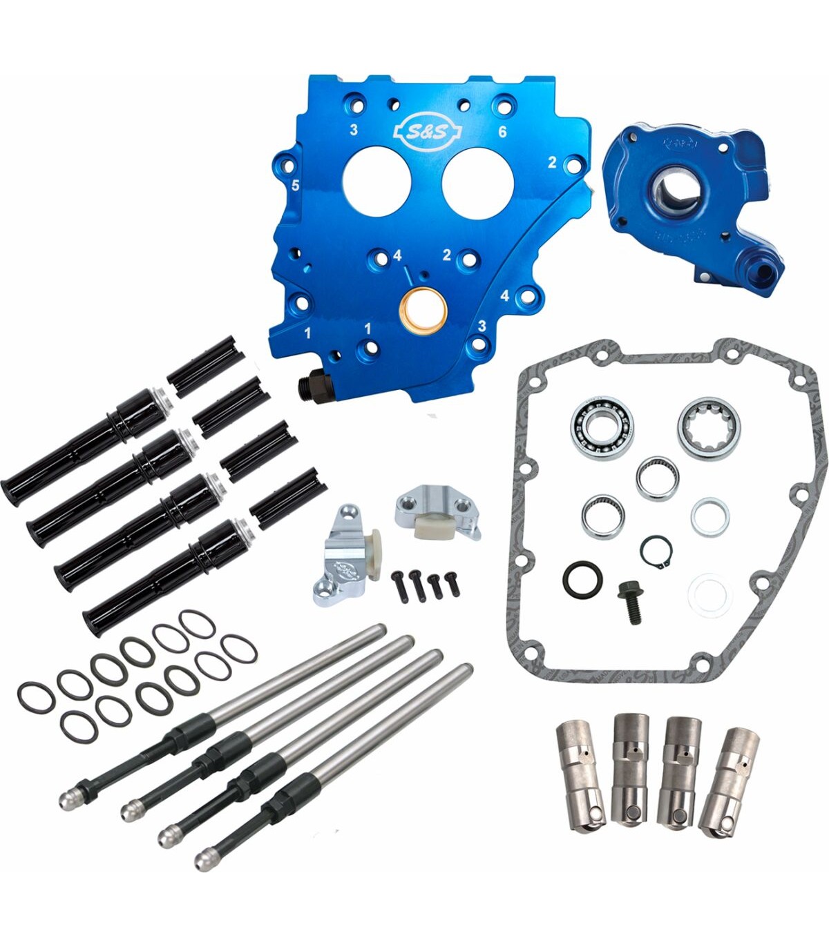 Kit de carter de distribution sans cames pour chaîne de distribution Twin CamPompe à huile/Platine de support d'arbre à cames :Bouchons amovibles pour un entretien plus facileSections de récupération indépendantes pour le bas-moteur et le carter de distributionFiltre à débris dans les deux détecteurs de récupération Tiges poussoir :Poussoirs :Fonctionnement de la distribution de soupape plus silencieuse.Critères de fabrication élevés réduisant les fuitesPas pour 06 Dyna.