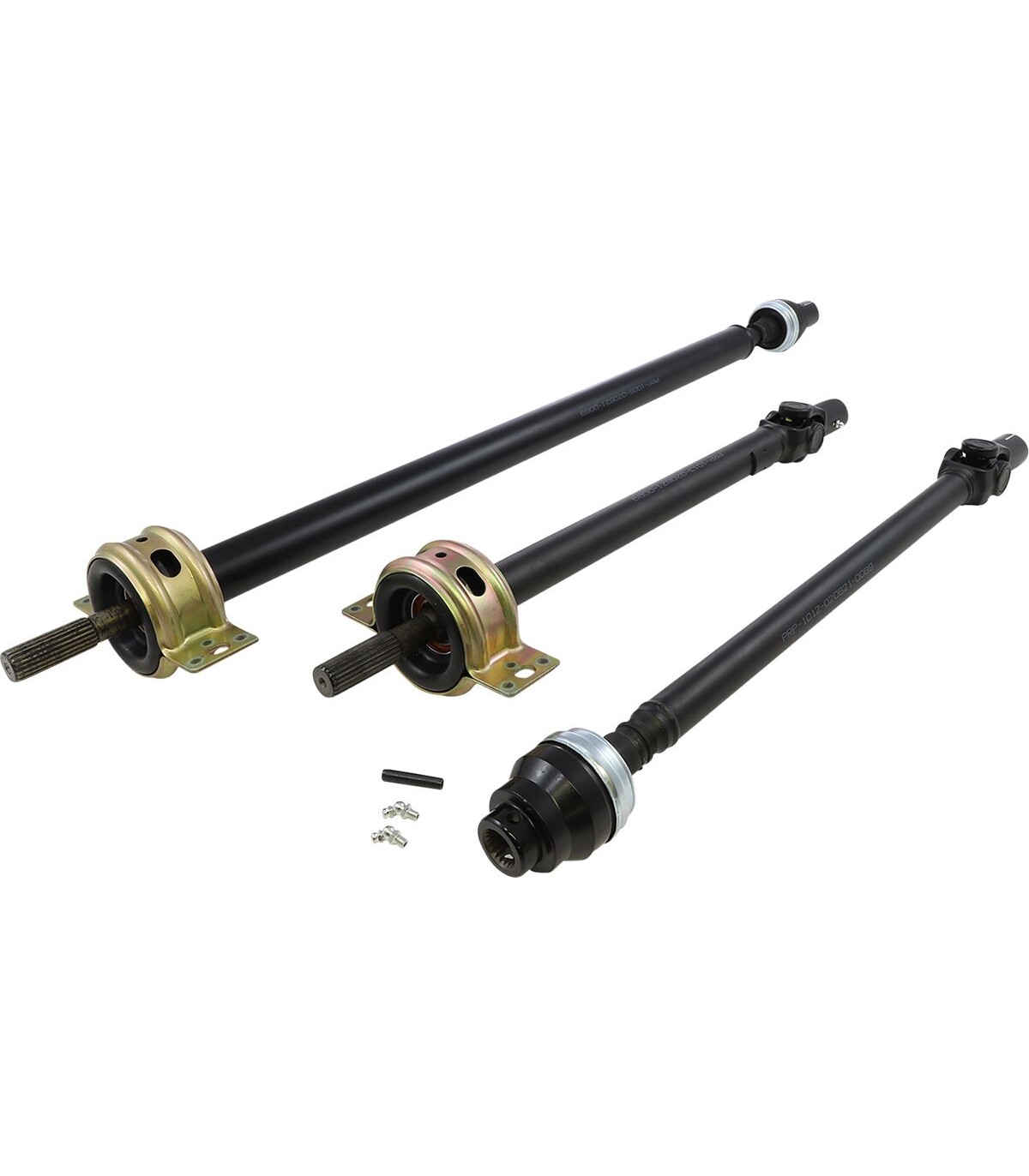 Arbre de transmission intégralÉquilibré et échelonné en tant qu’ensemble 2 pièces complet (le cas échéant) par le fabricantLa transmission complète est équilibrée afin de réduire le bruit et les vibrations tout en demeurant durable.Si le roulement de moyeu est inclus, les coûts diminuent, l’assemblage est facilité et l’on dispose d’une transmission complète prête à être installée.Les joints universels de cardan graissables permettent la maintenance de l’arbre de transmission.Conçus avec les mêmes dimensions qu’un arbre de transmission d'origine pour un ajustement garanti