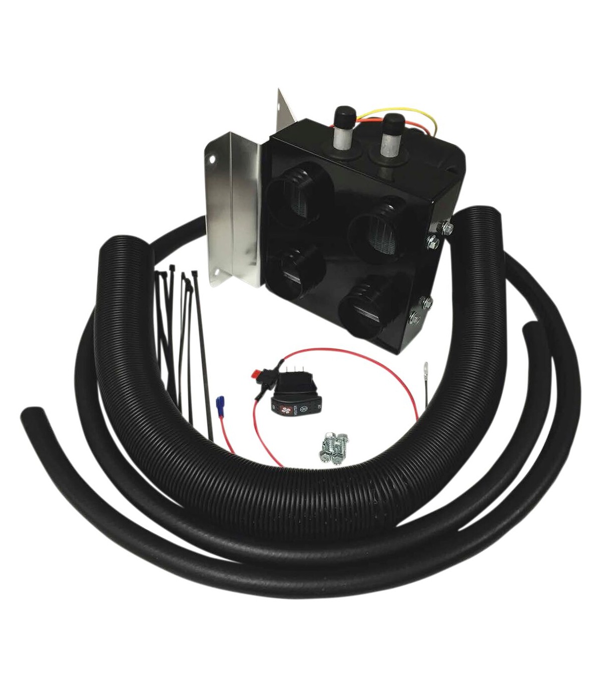 Kit de chauffage de cabine pour SSVKit de chauffage de cabine universel 12 volts pour SSV avec durites de radiateur de 1" et 3/4"Installation rapide et facileUne heure environ suffit.Fonctionne à l’eauFabrication aux États-UnisWith defrost, hidden under hood.