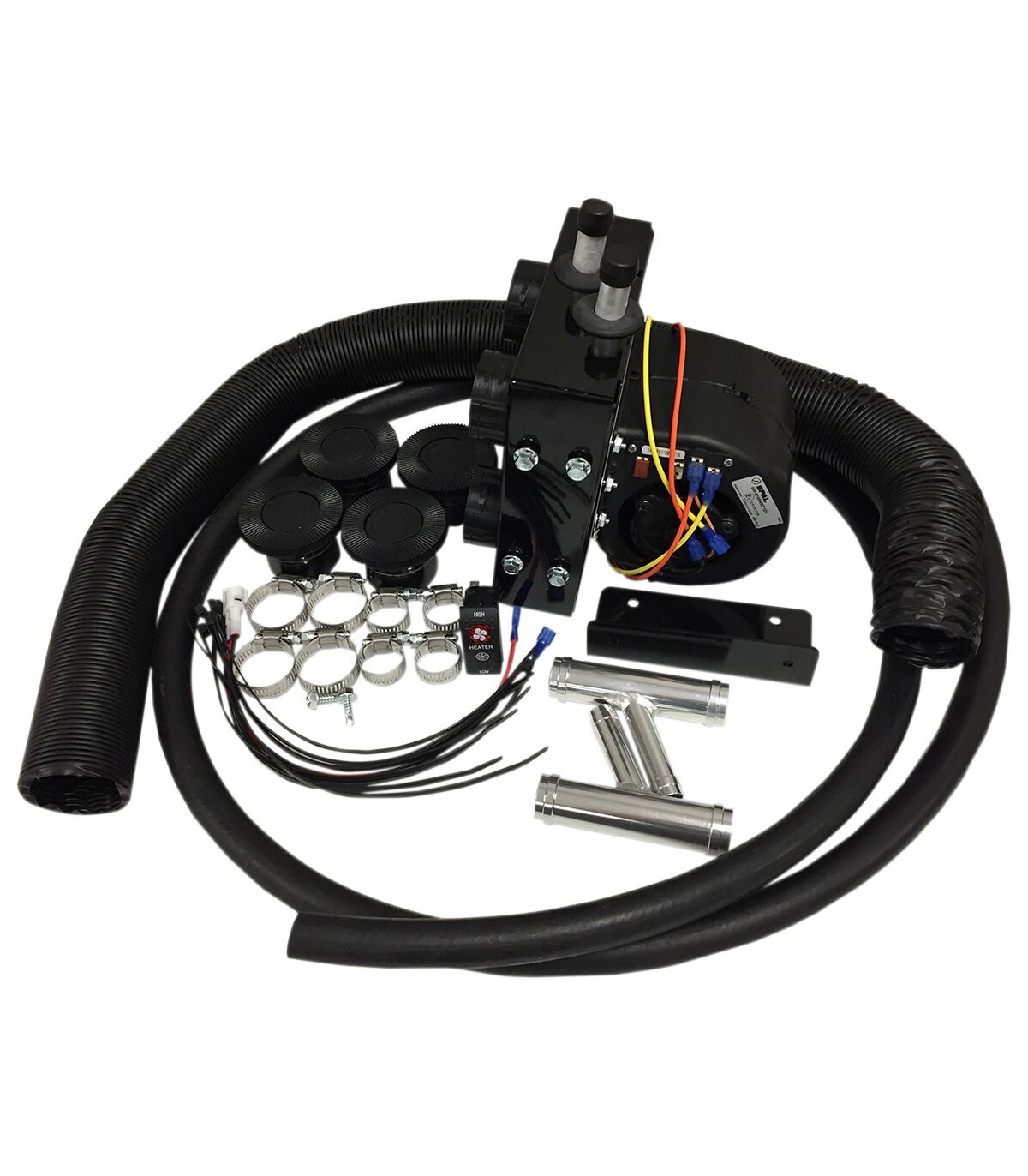 Kit de chauffage de cabine pour SSVKit de chauffage de cabine universel 12 volts pour SSV avec durites de radiateur de 1" et 3/4"Installation rapide et facileUne heure environ suffit.Fonctionne à l’eauFabrication aux États-UnisWith defrost, hidden under hood.