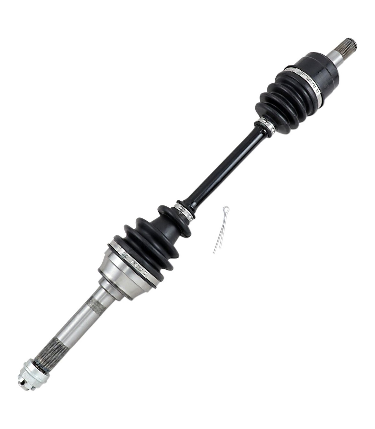 Kit d’axe completTous les composants internes réalisés avec précision sont assemblés grâce à de la graisse moly pour roulement résistant aux températures et charges élevéesTêtes de cardan côté pont et côté roue entièrement assemblées installées sur un arbre du cardan en acier chromoly 43-40Inclut un écrou d’axe et une rondelle (le cas échéant)Assemblage à l’aide de clamps low-profile en acier inoxydable