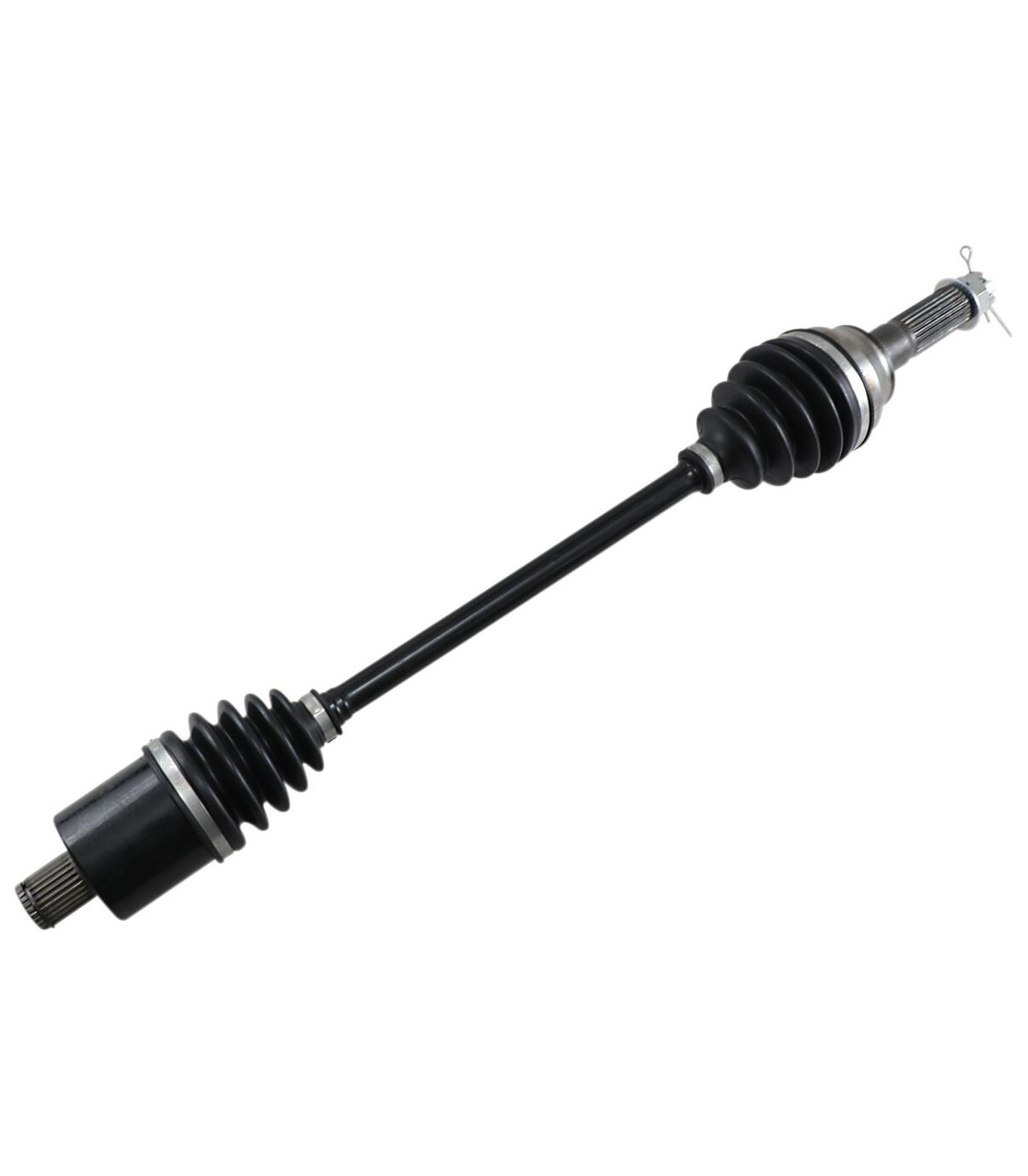 Kit d’axe completTous les composants internes réalisés avec précision sont assemblés grâce à de la graisse moly pour roulement résistant aux températures et charges élevéesTêtes de cardan côté pont et côté roue entièrement assemblées installées sur un arbre du cardan en acier chromoly 43-40Inclut un écrou d’axe et une rondelle (le cas échéant)Assemblage à l’aide de clamps low-profile en acier inoxydable