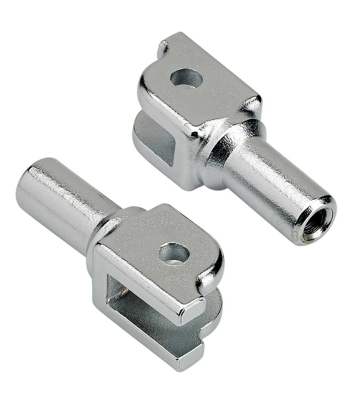 Fixations de repose-piedsEn acier chromé 4130 à moulage par cire perdue pour plus de résistanceUne interface filetée permet de régler facilement l'angle des repose-piedsLa surface conique de la chape crée une tension à l'intérieur du repose-pied lorsque la vis du bouchon est serrée à l'intérieur de la chape, maintenant le repose-pied en place.Fixez le support à l'aide du pivot d'origine, ou utilisez des boulons et des écrous de 3/8' pour fixer l'ensemble du pivot à votre machineReplaces clevises.