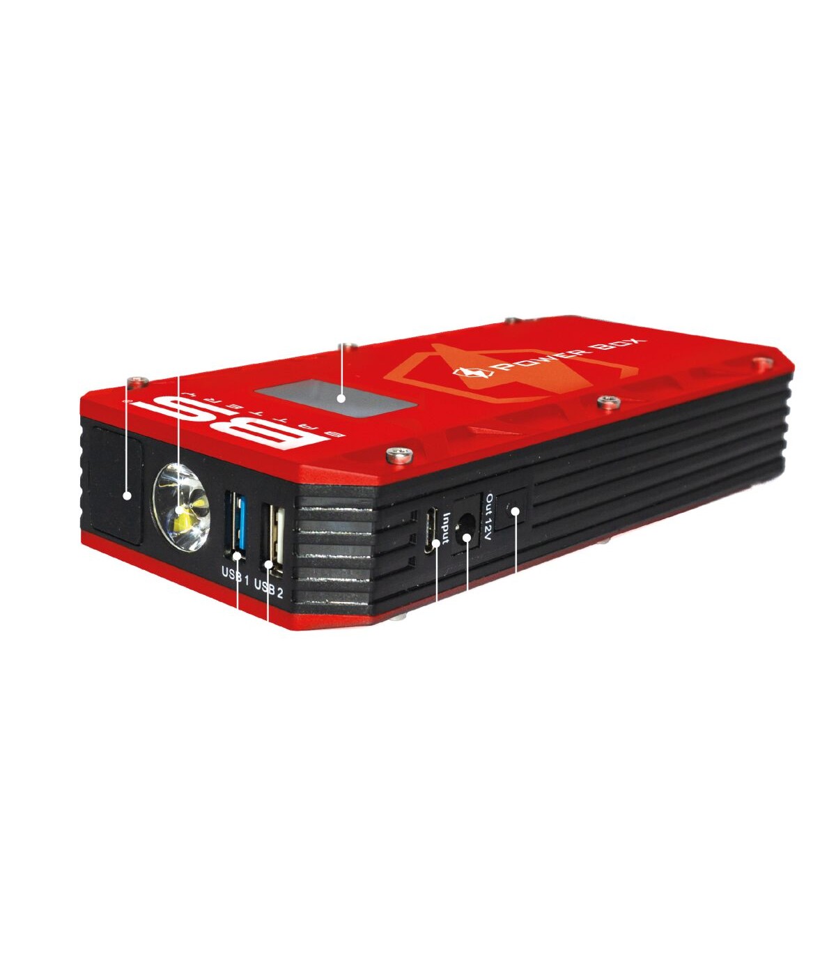 Booster Power Box PB-02The Power Box PB-02 is a perfect back-up power solution able to deliver 600A for jump starting vehicles (motorcycles, cars, boats and more…), charge USB devices (smartphones, tablets…) and offer emergency lighting.Ultra safe, this jump starter is delivered with smart cable to ensure spark-proof connection and reverse polarity protection. With small conception, it can be put inside any motorcycle trunk, glove box, adventurer backpack, or student bag.It ensures you to always start your vehicles and charge your mobile devices everywhere.The flashlight function provides 3 blinking modes with SOS, Strobe and normal constant light. Power Box PB-02 is compatible with lead acid batteries (SLA, GEL, AGM, EFB, MF, DRY, Ca/Ca).All of these features make the Power Box PB-02 a perfect backup power solution to keep close anytime.Compact & powerful lithium booster rated at 600A (1200A peak current).Up to 20 jumps starts in one charge.Designed for gas and diesel engines.Very safe: smart cable with spark-proof connection and reverse polarity protection.LED flashlight function with 3 modes.LED display with battery state of charging indication and output port used.