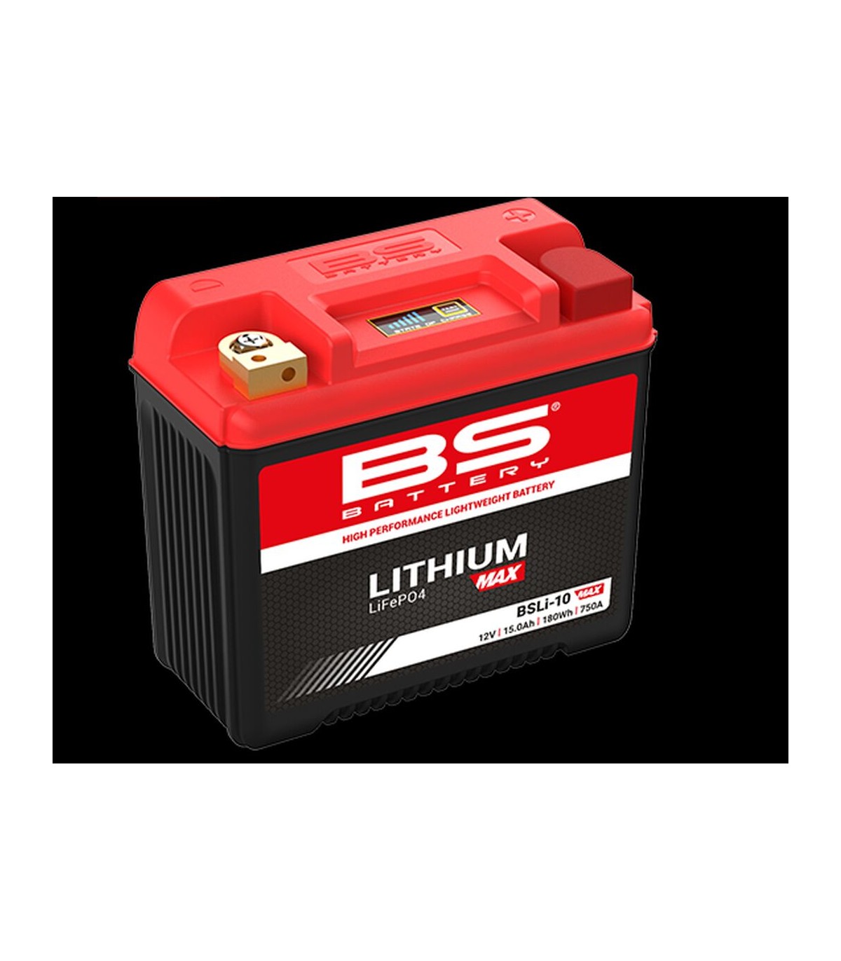 Batterie au lithium BSLI MAXCaractéristiques de la gamme de batteries au lithium MAX BSLi-XX :Témoin d’état de charge intégréLa batterie MAX BSLi-02 fait partie de la gamme BS LiFePO4 (batteries au lithium).Tension : 12,8 V/3 Ah (36 Wh)Prête à l’emploi : utilisable sans aucune préparation préalableLégèreté : jusqu’à 70 % moins lourdes que les batteries plomb-acideLongue durée de vie : plus de 2 000 cyclesCharge rapideExempte d’acides et de métaux lourds, non toxique ; ne pose pas de risque de fuiteTolère une température maximale de 230 °CPlacement dans différentes positions : jusqu’à 180°Déchargement très faiblePerformances de démarrage à froid impressionnantesCosses en laiton solidesUtilisation d’un agent à base de silicone pour une excellente étanchéitéNe chargez pas la batterie en appliquant une tension supérieure à 15 V !La sortie du régulateur/redresseur doit être mesurée avant que la batterie soit montée.Veuillez lire le manuel avant l’installation.