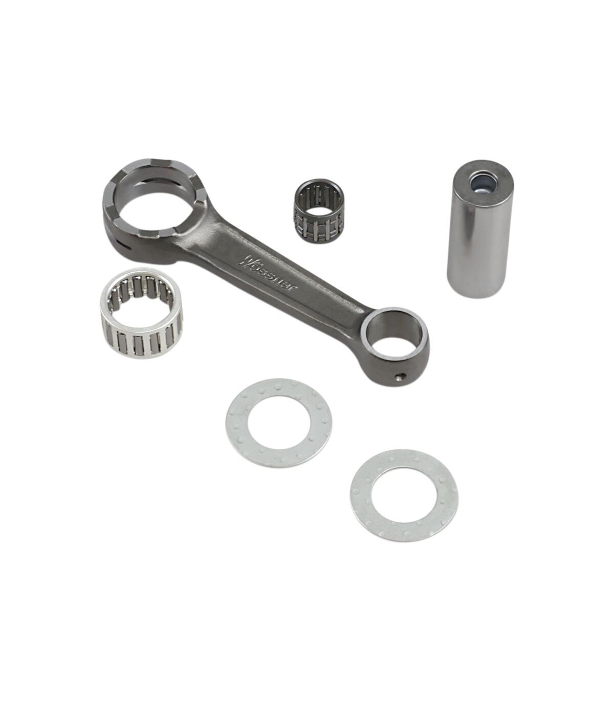 Connecting Rod Kit for 2-StrokeDesigned to fit OEM bearing and crank pinShot peened for ultimate strength and long life8620 forged alloyFEA (computer simulation) used to fine tune every designGerman engineeredFor best results use corresponding Wössner piston kit.Kit includes connecting rod, bearing, big end pin, top end bearing, and washers