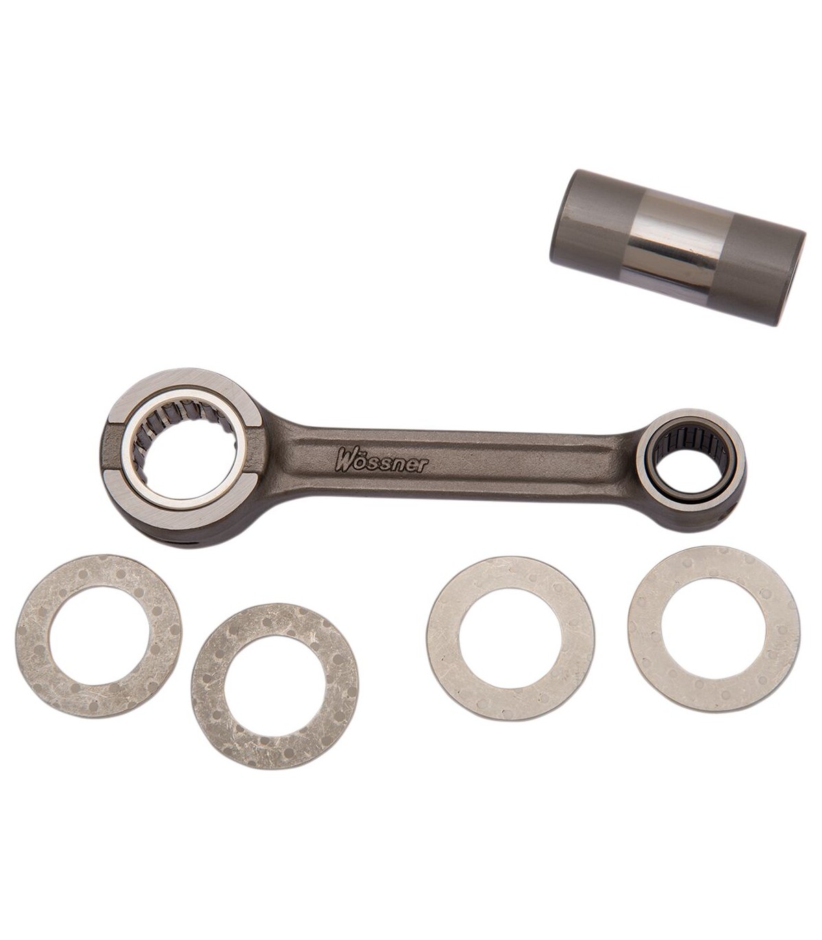 Connecting Rod Kit for 2-StrokeDesigned to fit OEM bearing and crank pinShot peened for ultimate strength and long life8620 forged alloyFEA (computer simulation) used to fine tune every designGerman engineeredFor best results use corresponding Wössner piston kit.Kit includes connecting rod, bearing, big end pin, top end bearing, and washers