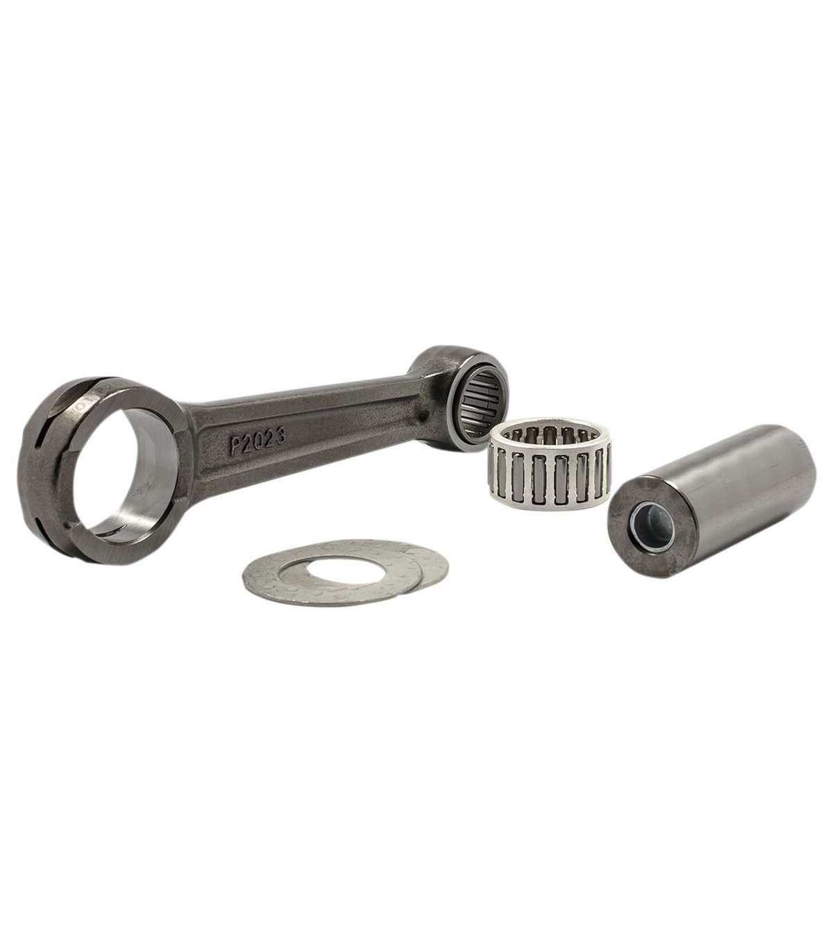 Connecting Rod Kit for 2-StrokeDesigned to fit OEM bearing and crank pinShot peened for ultimate strength and long life8620 forged alloyFEA (computer simulation) used to fine tune every designGerman engineeredFor best results use corresponding Wössner piston kit.Kit includes connecting rod, bearing, big end pin, top end bearing, and washersWill fit '23-'25 KTM 250SX TBi (Throttle Body injection), 250XC TBi, 300SX TBi, 300XC TBi, '24 KTM 250EXC TBi, 300EXC TBi, and '23-'24 KTM 250XC-W TBi models.