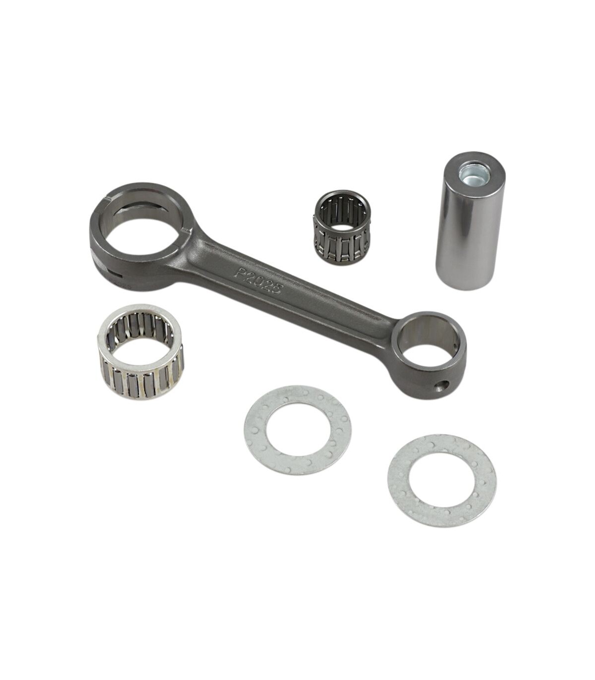 Connecting Rod Kit for 2-StrokeDesigned to fit OEM bearing and crank pinShot peened for ultimate strength and long life8620 forged alloyFEA (computer simulation) used to fine tune every designGerman engineeredFor best results use corresponding Wössner piston kit.Kit includes connecting rod, bearing, big end pin, top end bearing, and washers