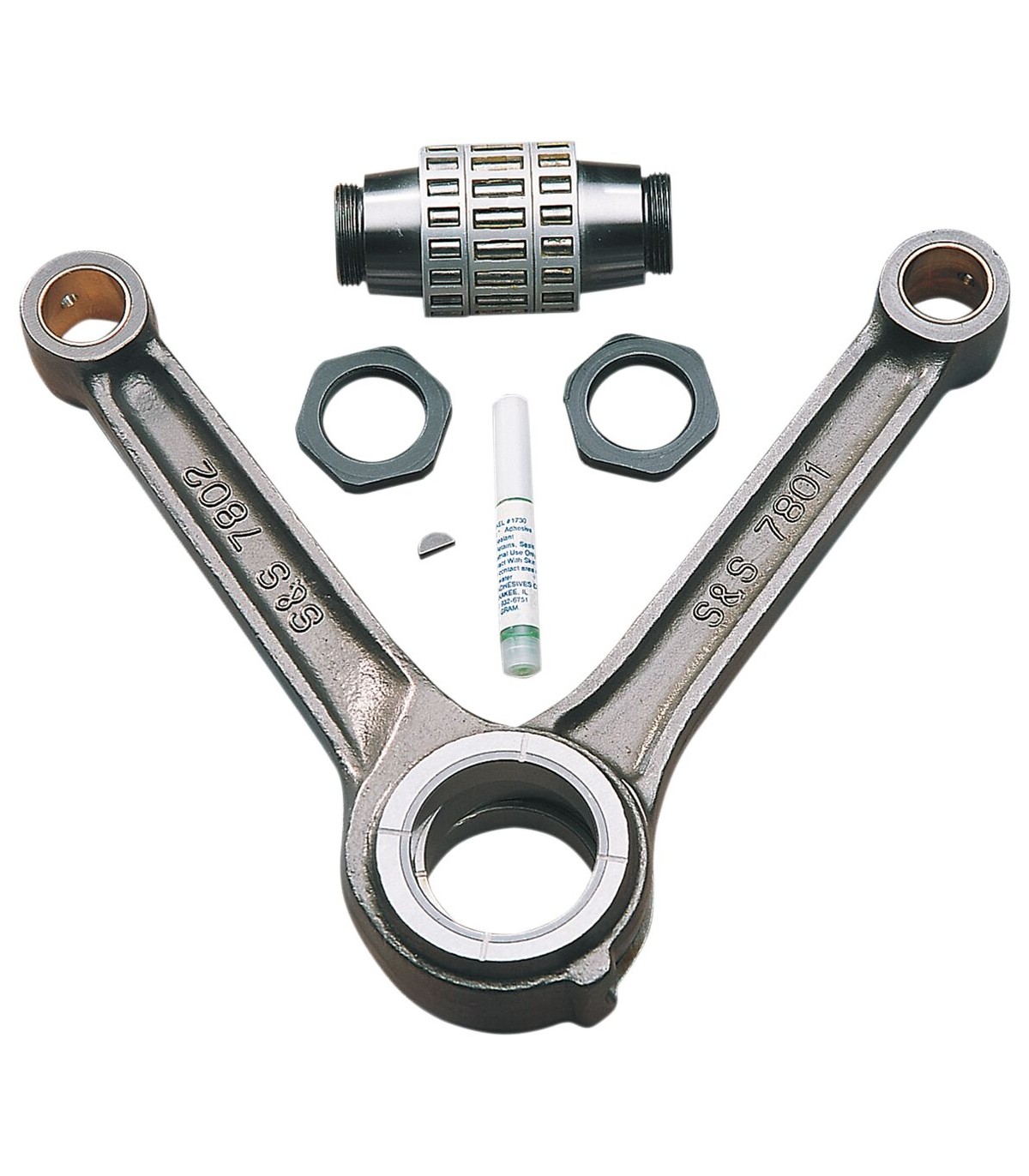 équipement et il est fourni prêt à installerLe kit comprend les bielles avant et arrière, un maneton et des écrous, des cages en acier et des roulements à rouleauxLe maneton comprend deux perçages pour la lubrification et quatre entailles de chaque côté des manetons pour maintenir un film d'huile sur les surfaces de frictionLes bielles sont forgées et traitées thermiquement, elles sont 0,120” plus larges que les pièces d’origine au niveau de la section en I et elles comprennent un jeu entre les bielles pour permettre des courses de jusqu’à 5”Fabrication aux États-UnisPour pouvoir installer des kits bielle, un espacement supplémentaire des volants et des carters peut s’avérer nécessaire.