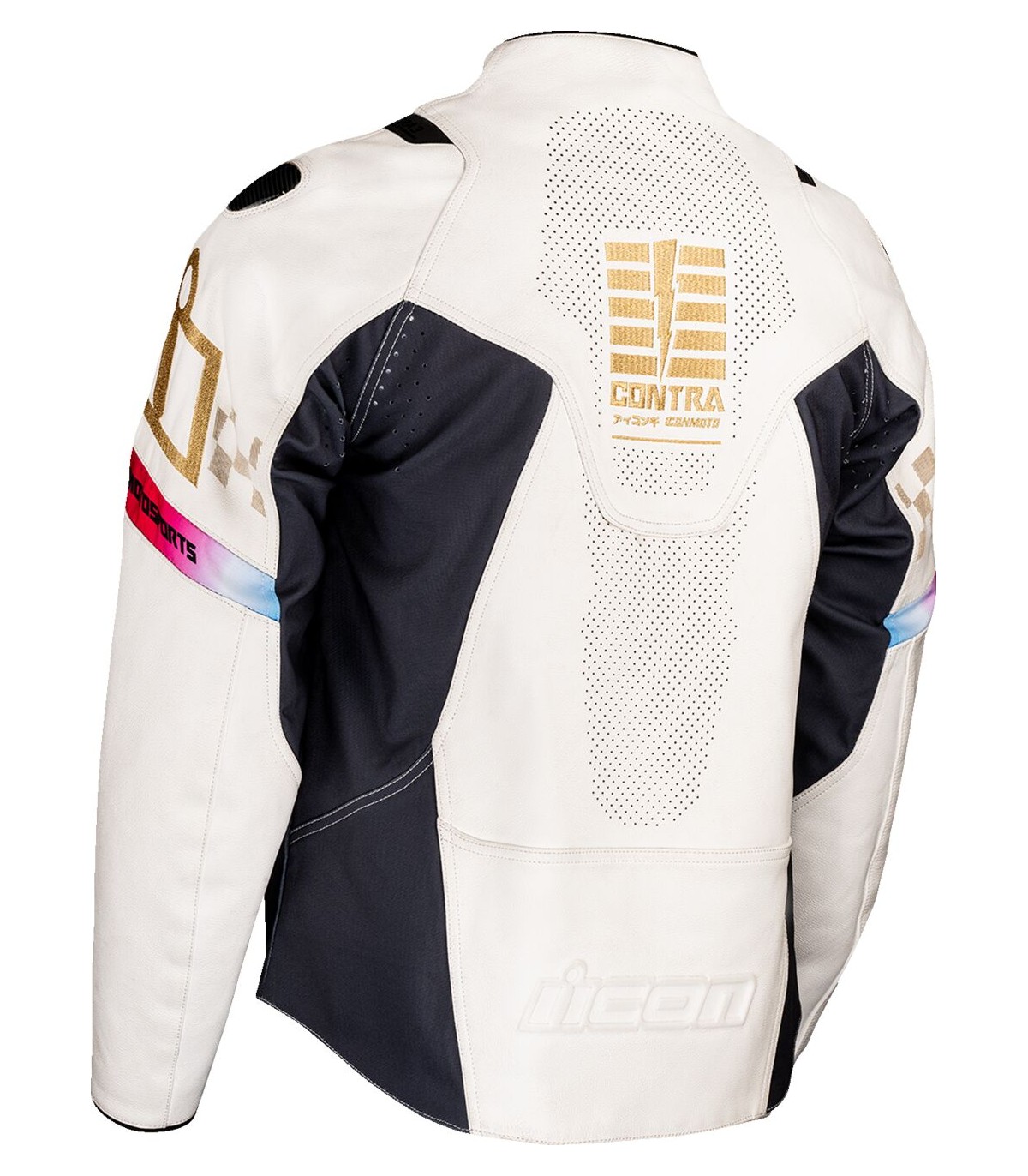 Veste Contra3™ Rizz RizzLes bras précourbés sont étudiés pour offrir une position de conduite agressive.Châssis en cuir de vache brésilien de 1,2-1,4 mm Protections contre les impacts D3O® de niveau 1 aux épaulesLes perforations découpées au laser aux endroits stratégiques permettent un flux d’air adéquat par temps chaud.Doublure isolante amovible sur toute la longueurGraphismes Icon personnalisésÉléments réfléchissants Fermetures éclair YKK® de qualité supérieure et fermetures éclair aux manchettesHomologation EN 17092-4:2020