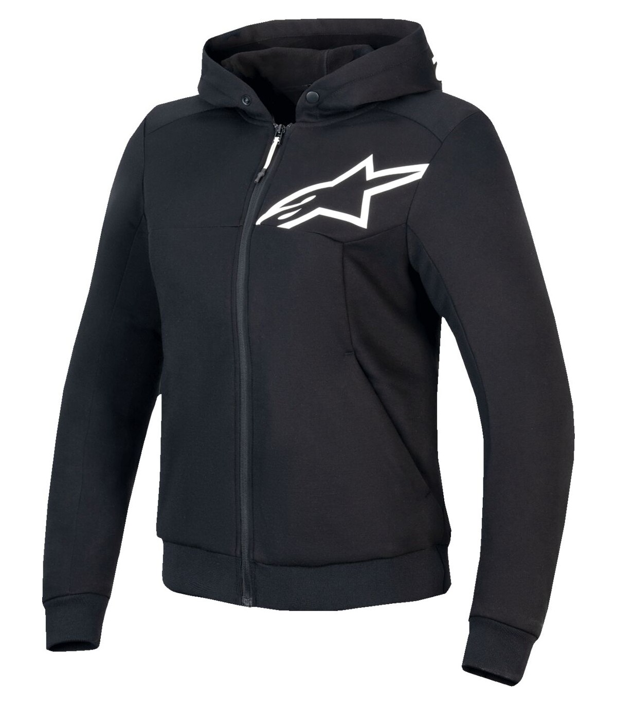 Sweat-shirt à capuche Stella Chrome v2 SportConfère une excellente résistance à l’abrasion du fait des renforts en aramide sur les épaules et les coudes, au travers d’un look décontracté qui donne au pilote fière allure aussi bien sur sa moto qu’en dehorsMuni aux épaules et aux coudes de protections Nucleon Flex Plus constituant un rempart fiable contre les chocsCoupe sophistiquée créant une silhouette athlétique et moderne et fournissant simultanément un confort et un ajustement optimauxPrivilégie confort et liberté de mouvement sans nuire au style ni aux performancesPourvu d’une capuche sans cordon qui se serre autour du cou au moyen d’un bouton-pression sur le col et qui constitue une protection supplémentaire contre les éléments pendant la conduiteLe système de fixation de la capuche à l’arrière maintient celle-ci stable lorsqu’elle n’est pas utilisée, évitant qu’elle flotte au vent lorsque le pilote est sur la route.Châssis principal en polaire technique, délivrant simultanément confort durable et légèretéDeux poches pour les mains avec compartiments zippés pour les objets essentielsUne poche imperméable pour une protection supérieure contre l’humidité et la pluieCompatible avec Tech-Air®Homologation EN 17092-4:2020