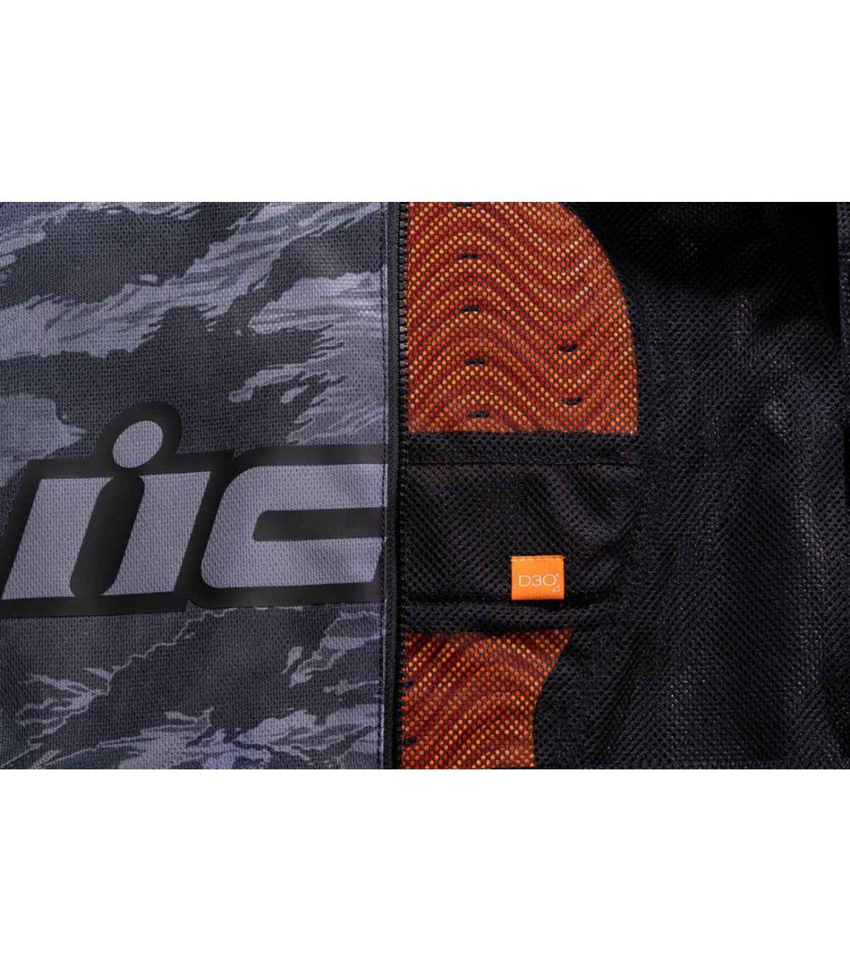 Veste Hooligan CE TigersbloodIncarnant la coupe sport d’Icon, cette veste est faite d’un châssis en polyester 300 deniers.Des empiècements en maille Iron Weave™ sont placés aux endroits stratégiques, améliorant considérablement le flux d’air.Protections contre les impacts D3O® aux épaules, aux coudes et dans le dosProtection dorsale homologuée EN 1621-2 niveau 1