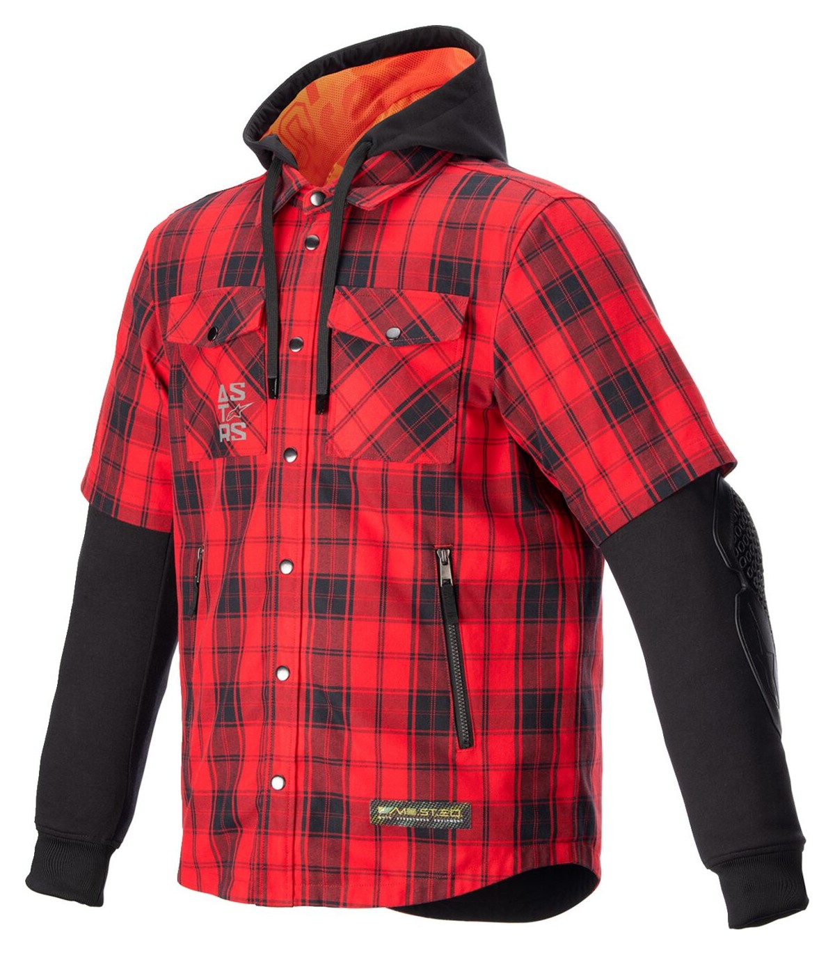 Veste-chemise MO.ST.EQ TartanLa veste MO.ST.EQ Tartan est un vêtement de conduite entre la chemise et le-sweat-shirt à capuche qui est protecteur.Veste-chemise de mi-saison à manches courtes, avec capuche amovible et protection apparente sur les coudesIntérieur constitué d’une matière entièrement extensible faite à 9 % d’élasthanne, avec protections visibles rattachées et extérieur de style chemise de bûcheron en polyamide très résistantTraitement déperlant en guise de finition, qui augmente le confort et grâce auquel la veste peut être utilisée par des temps très variésProtection visibleProtection Nucleon Flex Plus légère, respirante et discrèteFermeture éclair recouverte par des boutons-pression sur le devant, poches repose-mains zippées et compartiment imperméable interneCette veste-chemise est dotée de boucles d’attache pour le pantalon, d’une doublure en maille sublimée ainsi que d’une capuche amovible et, de ce fait, est pratique à porter tous les jours.EN 17092-4:2020 – classe AProtections de coude et d’épaule homologuées EN 1621-1:2012 niveau 1