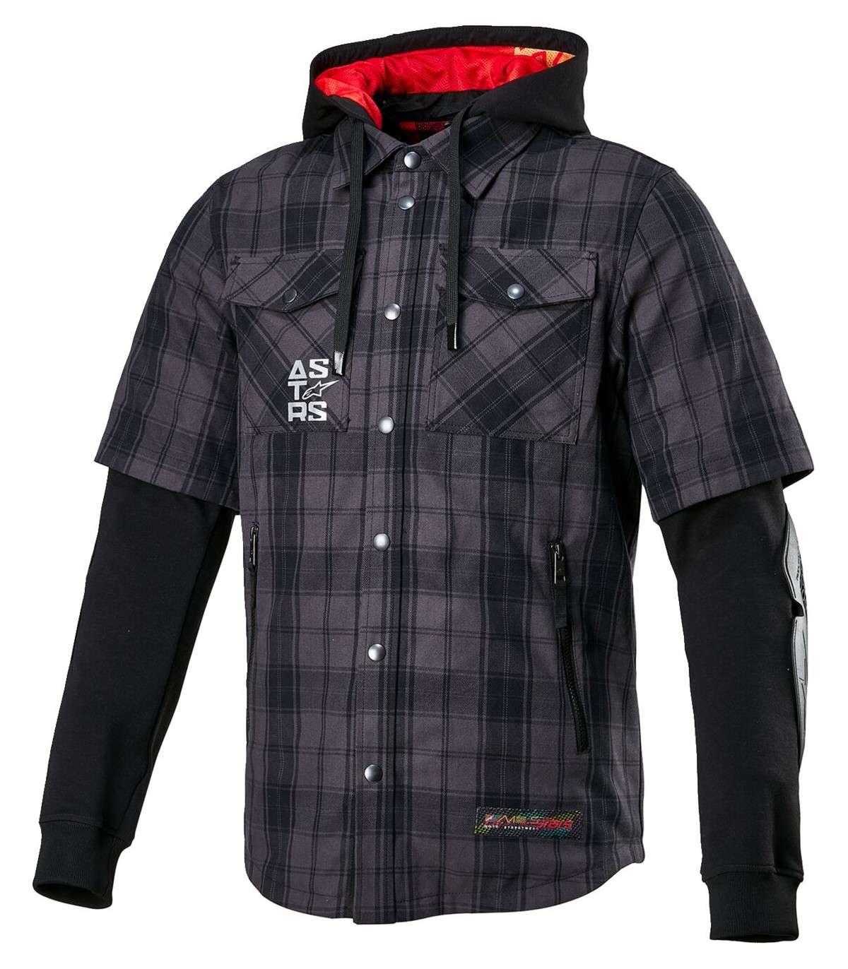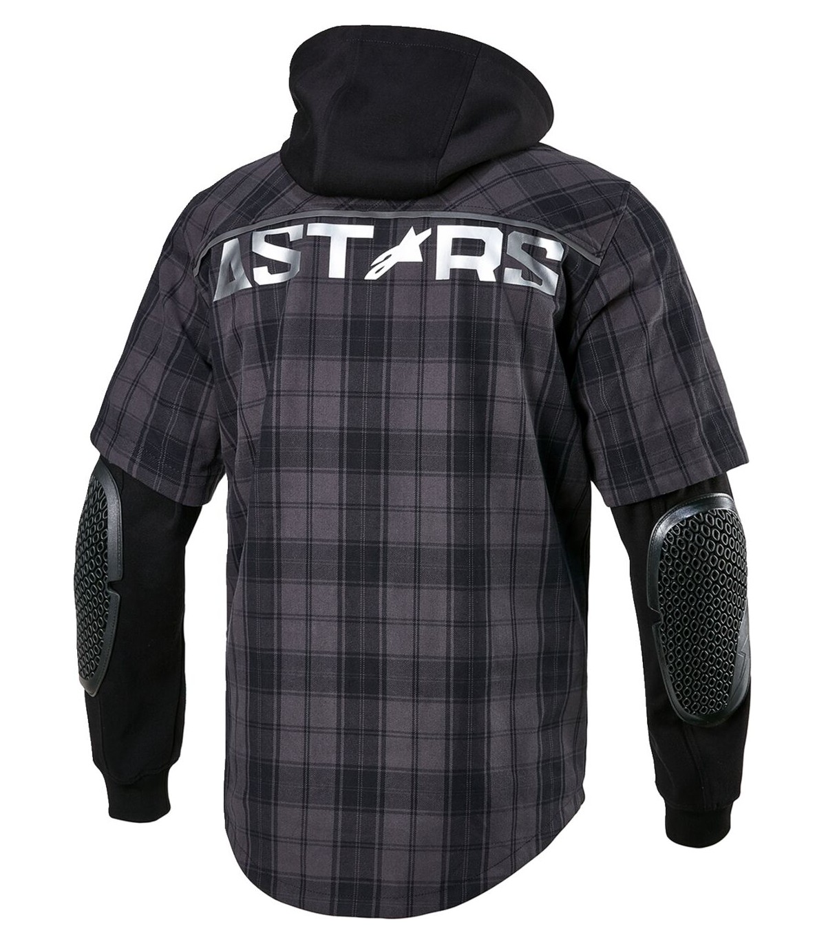 Veste-chemise MO.ST.EQ TartanLa veste MO.ST.EQ Tartan est un vêtement de conduite entre la chemise et le-sweat-shirt à capuche qui est protecteur.Veste-chemise de mi-saison à manches courtes, avec capuche amovible et protection apparente sur les coudesIntérieur constitué d’une matière entièrement extensible faite à 9 % d’élasthanne, avec protections visibles rattachées et extérieur de style chemise de bûcheron en polyamide très résistantTraitement déperlant en guise de finition, qui augmente le confort et grâce auquel la veste peut être utilisée par des temps très variésProtection visibleProtection Nucleon Flex Plus légère, respirante et discrèteFermeture éclair recouverte par des boutons-pression sur le devant, poches repose-mains zippées et compartiment imperméable interneCette veste-chemise est dotée de boucles d’attache pour le pantalon, d’une doublure en maille sublimée ainsi que d’une capuche amovible et, de ce fait, est pratique à porter tous les jours.EN 17092-4:2020 – classe AProtections de coude et d’épaule homologuées EN 1621-1:2012 niveau 1