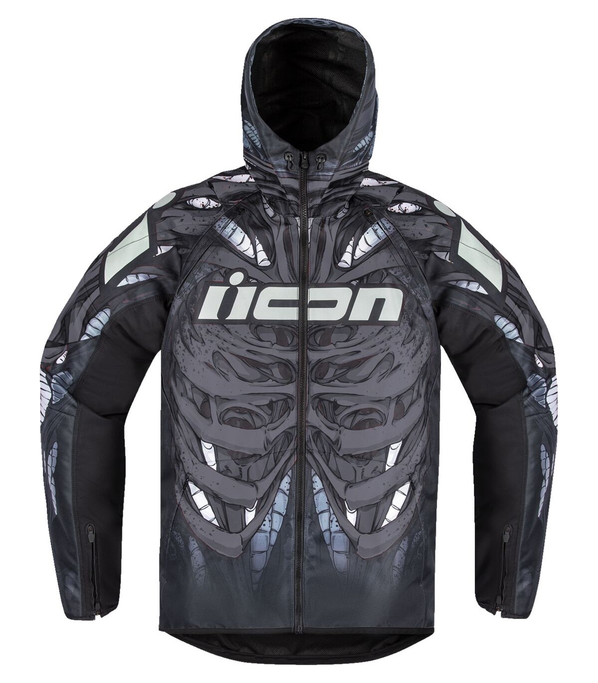 Veste Airform Manik’r™Graphisme Airform Manik'r™ devant et dans le dosChâssis en polyester 420 deniers avec renfort interne en polyester 300 deniersMatériau de la coque revêtu de polyuréthane ; finition DWRProtection dorsale D3O® Viper amovible et protections contre les impacts aux coudes et aux épaulesCapuche à cordon élastiquePanneau central avant AirFly™ en maille, avec aérations zippées sur la poitrine et dans le dos Fermetures éclair aux poignets pour une meilleure ventilationProtection dorsale homologuée EN 1621-2 niveau 1