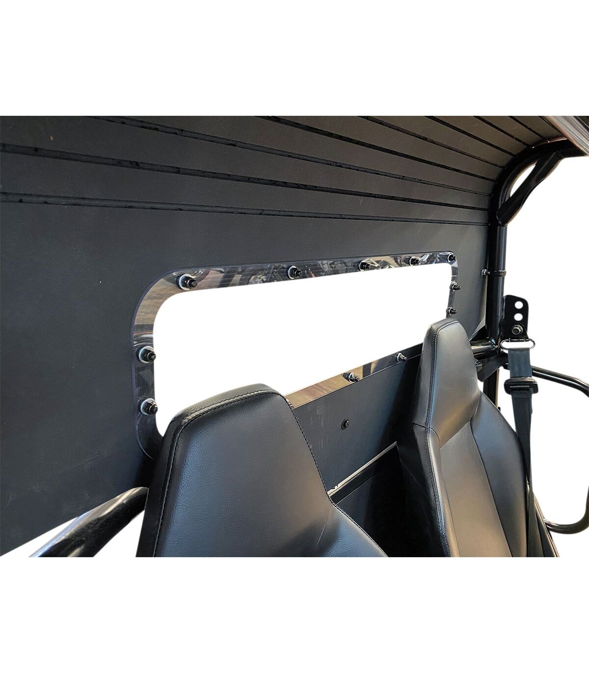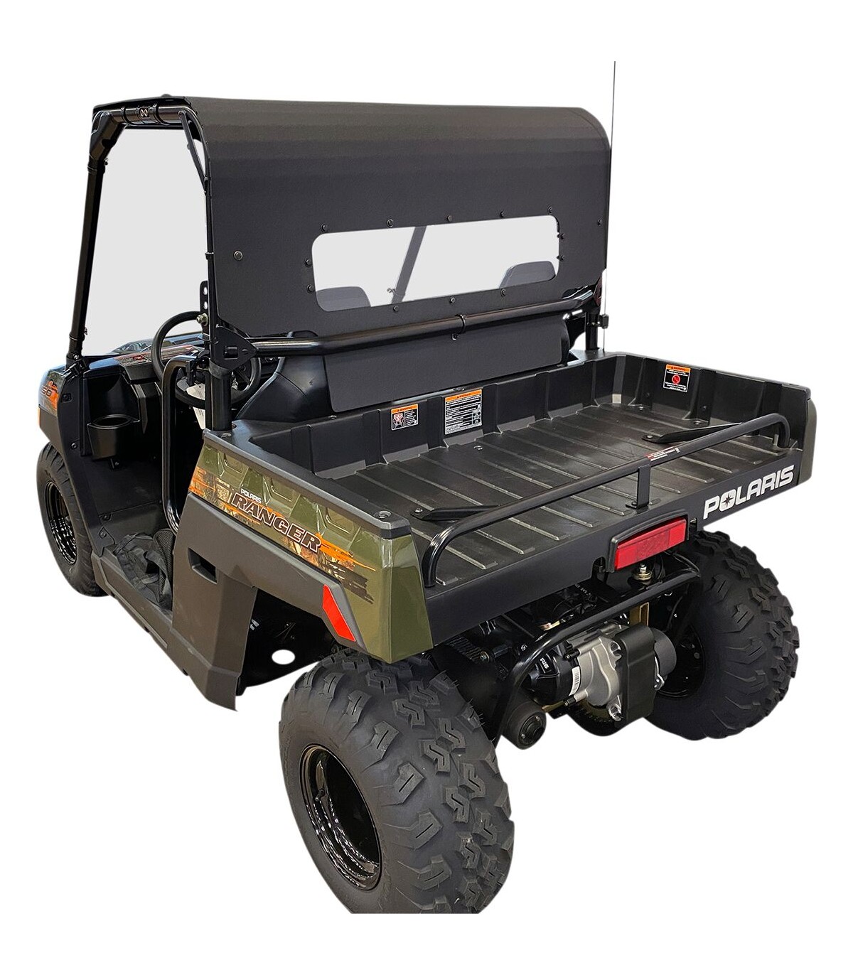 Roof Panel with WindshieldThe best choice for weather protectionFull windshield is made with ultra-durable 0.177" polycarbonate for long-lasting, high-strength protection and a clear viewRoof and most of the rear panel are made with 0.25" HMWPE (High Molecular Weight Polyethylene)The HMWPE rear panel has a cutout clear polycarbonate panel for rear visibilityThe pieces all bolt together, then attach to the vehicle with galvanized steel, rubber-coated P-clamps