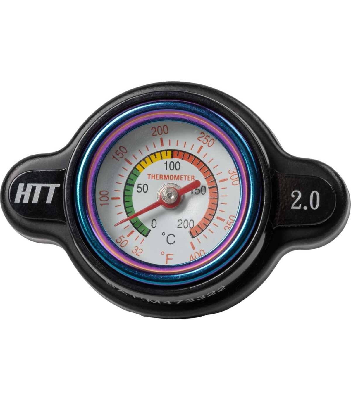 Radiator Cap with Temperature GaugeImproved radiator cap with a high performance design that includes a temperature gauge to easily monitor engine coolant temperaturesHigh-quality aluminum alloy, silicone rubber, and zinc materials increase durability avoiding the common issue of fatigue in the rubber and spring preventing water leakageBuilt-in thermometer that displays coolant temperatures in both Celsius and Fahrenheit promoting safety before removing the capDirect bolt-on for easy installation