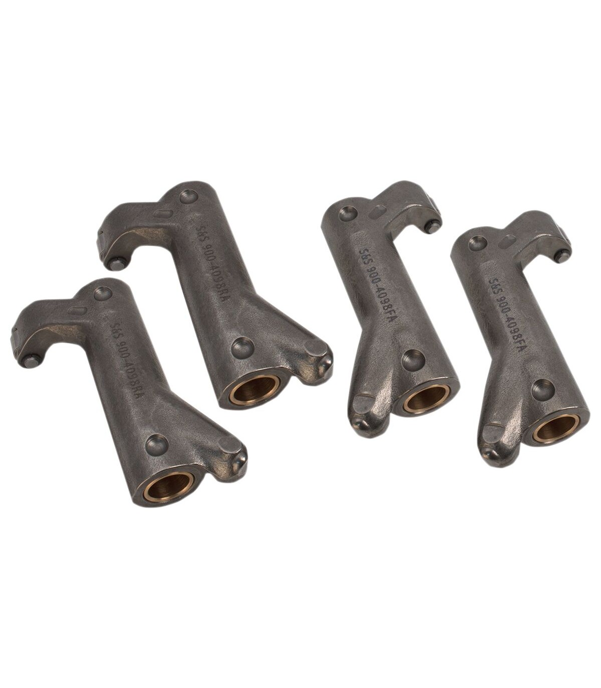 Balanciers forgésEn acier forgé 8620 avec traitement thermique pour une résistance maximaleBague de culbuteurs S&S de 0,750" de long, avec 50 % de surface portante de plus par rapport aux bagues standards de 0,500"Peut être huilé à travers des tiges poussoirs lors de l’utilisation avec les embases de poussoirs et les tiges poussoirs S&SCompatible avec cache-culbuteurs taillés dans la masse d’origine et S&S de type ShovelheadCertains caches culbuteurs de série doivent être surfacés pour enlever la matière nécessaire gênant les culbuteurs à rouleaux.L'ensemble comprend deux culbuteurs avant et arrièreFabriqué aux États-Unis.ratio culbuteur 1.725:1.