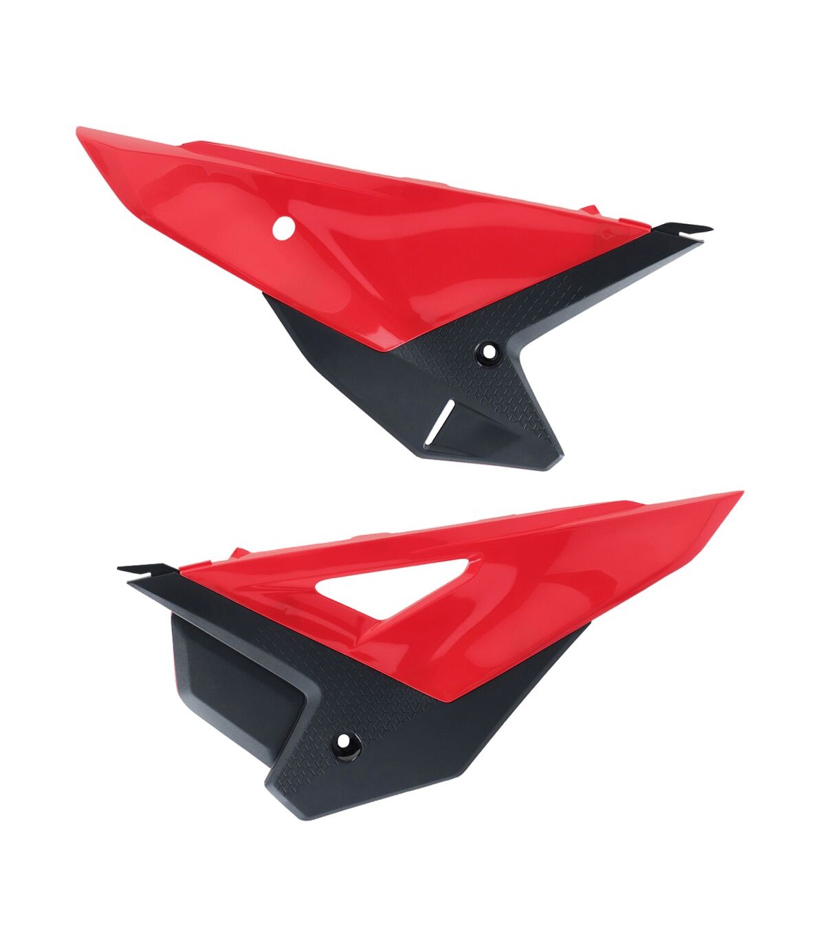 Side Panels For HondaInjection-molded, quality plastic components with an OEM type fitExact replica of stock OEM plastic components but strongerGlossy and flexibleSold as a pair