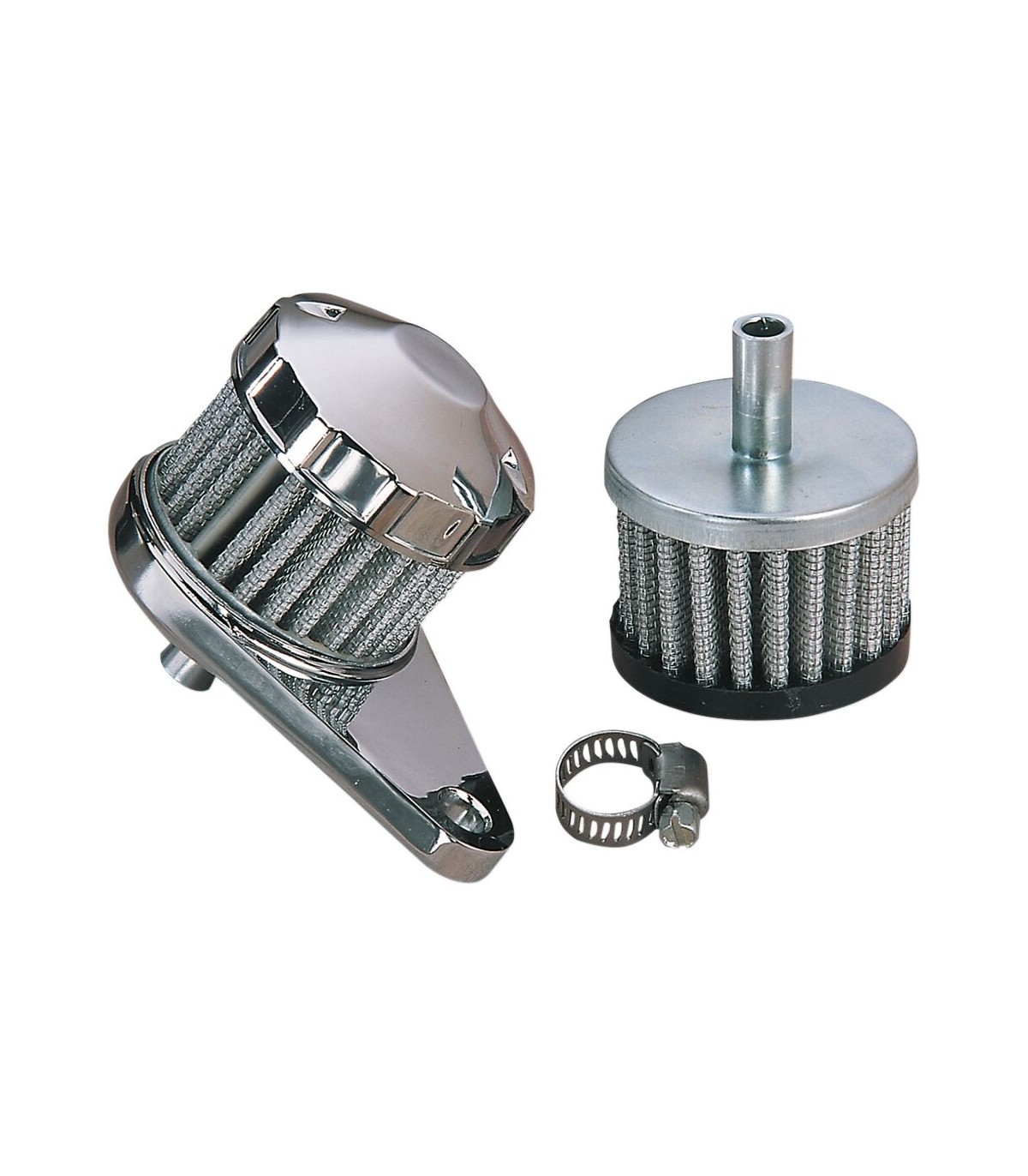 Crankcase Vent FilterFeatures one-piece, chrome-top filter, hose clamp and die-cast mounting base; accepts 3/8" i.d. hoseReplacement filter for this kit is 14-20905
