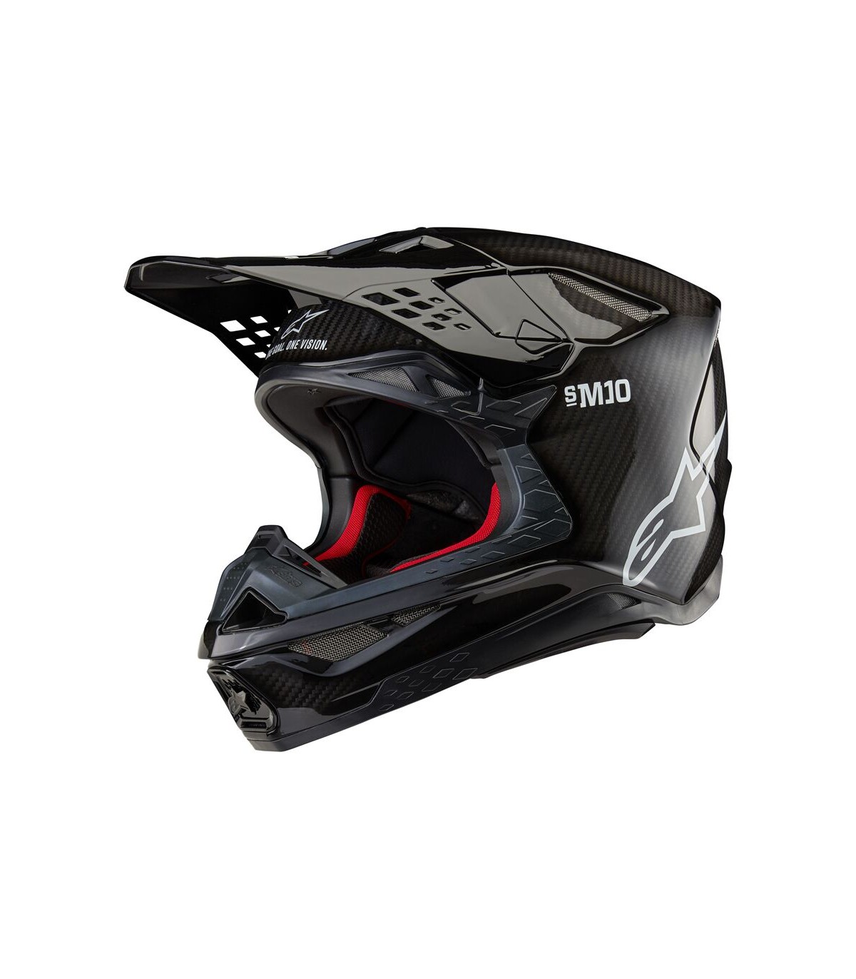 Supertech M10 Solid HelmetThe S-M10 shell sizing solution ensures each helmet fit size has its own appropriate shell size to deliver the most anatomical solution for the wide variety of fit needs, thus ensuring riders have the correct fit to improve comfort, reduce overall weight, and improve effectiveness of the helmet in an impact.Surface curvature promotes reduced friction on impact, allowing deflection and transfer of energy to protect the rider's head from direct force to the skull and referred to the neck and spinal column.The S-M10's design offers a smooth, attractive, aerodynamic profile which is streamlined and free of a y external channels and features that might act as a load point in an impact or compromise the overall integrity of the helmet's construction.Fitted with E-2, last generation of MIPS, integrated low friction layer designed to reduce rotational motion transferred to the brain from angled impacts to the head.Chin bar's base area specifically sculpted to give a relief section and raised to clear the collarbone.Soft EPS liner extends beyond the helmet shell itself and is covered by a flexible rubber compound providing a reduced chance of any sort of collarbone injury.A-Head Fitment System allows easy adjustment of the angle and height that the helmet sits on the head.Ultra-ventilated helmet with 28 individual intake and exhaust ports, not including the eye port, with 18 intakes and 10 exhausts.Eject technology includes the eject helmet removal system.Rotational acceleration and oblique impact performance.Removable side pads, made from a semi-soft polymer for added protection, provide contact area to help spread impact energy.Emergency Release System (ERS) Emergency Visor Release and Visor Extension provides protection.