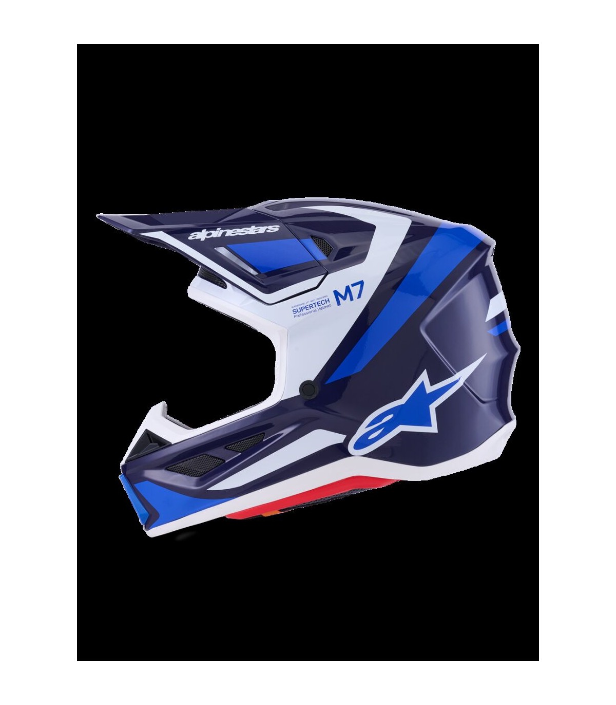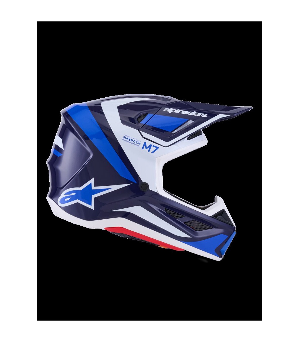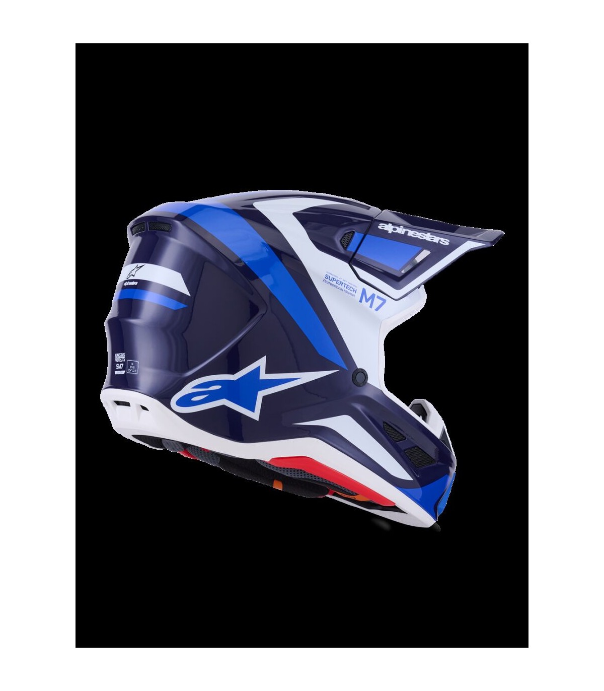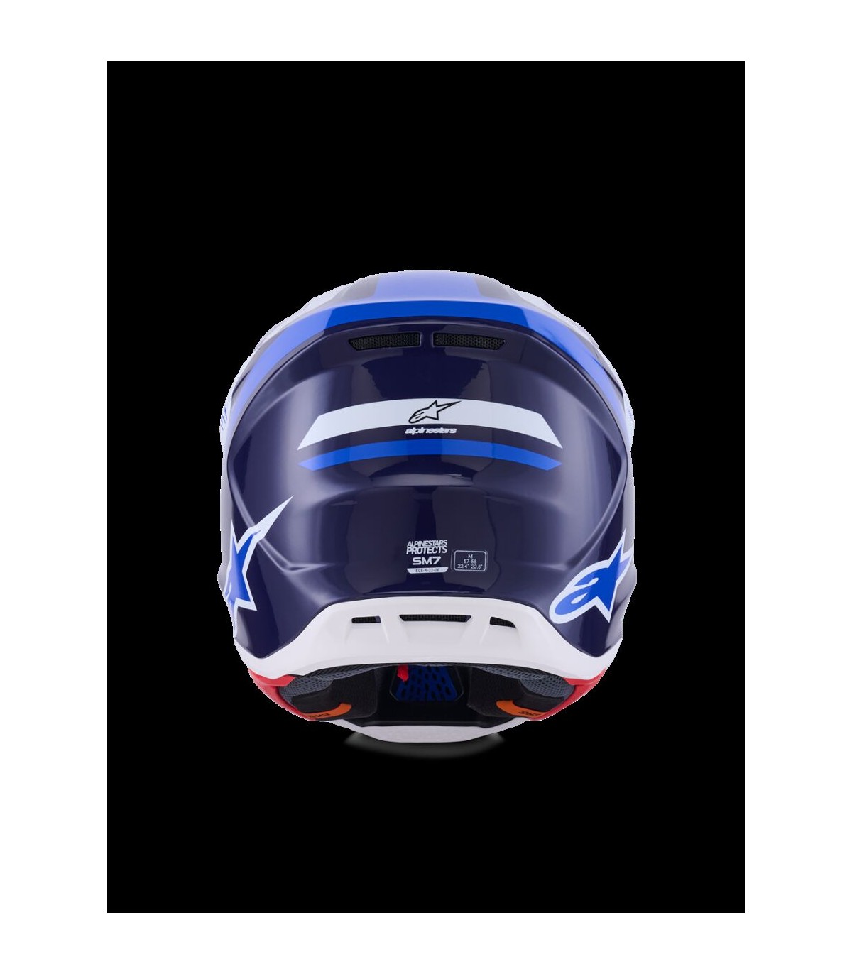 SM7 Rise HelmetThe SM7 helmet is engineered for off-road racing combining impact protection and comfort.Outer shell composite construction is lightweight and durable.Outer shell's aerodynamic profile has been designed reduce friction on impact, allowing deflection and the most efficient transfer of energy to protect the rider's head from direct force, referred to the neck and spinal column.Thanks to 20 individual intake and exhaust ports, not including the eye port, with 13 intakes and 8 exhausts this helmet is ultra-ventilated. Patented visor detaching system is engineered to automatically detach visor from the shell when subjected to an impact energy greater than 15 joules for optimum impact protection, regardless of the direction.Alpinestars patented Plasma technology is strategically-integrated into the SM7's side pads for high performance shock absorption in critical area to reduce the risk of injuries significantly. Linings are removable and washable.The Cheek Pads are fitted 3D foam, with an emergency extraction system (ERS), with a channel for hydration tube installation. Cheek pads are interchangeable among all sizes.Crown Pad and the Neck Pad are elastically connected, for better oblique impact management.Top Pad is removable and adjustable in height thanks to the A-head system.Chin strap is fitted with a 25 mm width nylon strap, stainless steel DD rings, removable covers for washing purpose.Shell sizing solution ensures each helmet fit size has its own appropriate shell size to deliver the most anatomical fit.Three different helmet shell sizes M, L and XL, and 6 consumer sizes from XS to XXL to ensure correct fit. Improving comfort, effectiveness of the helmet in an impact and reducing overall weight.Fit can further be customized via Alpinestars genuine replacement cheekpads available in all thicknesses and are exchangeable between all shell sizes.Both sides have integrated channels to accommodate hydration system.Communication system compatible thanks to cutaway section on the left-side of the EPS to seamlessly accommodate Intercom Systems, with earphone recesses on both sides for speakers.