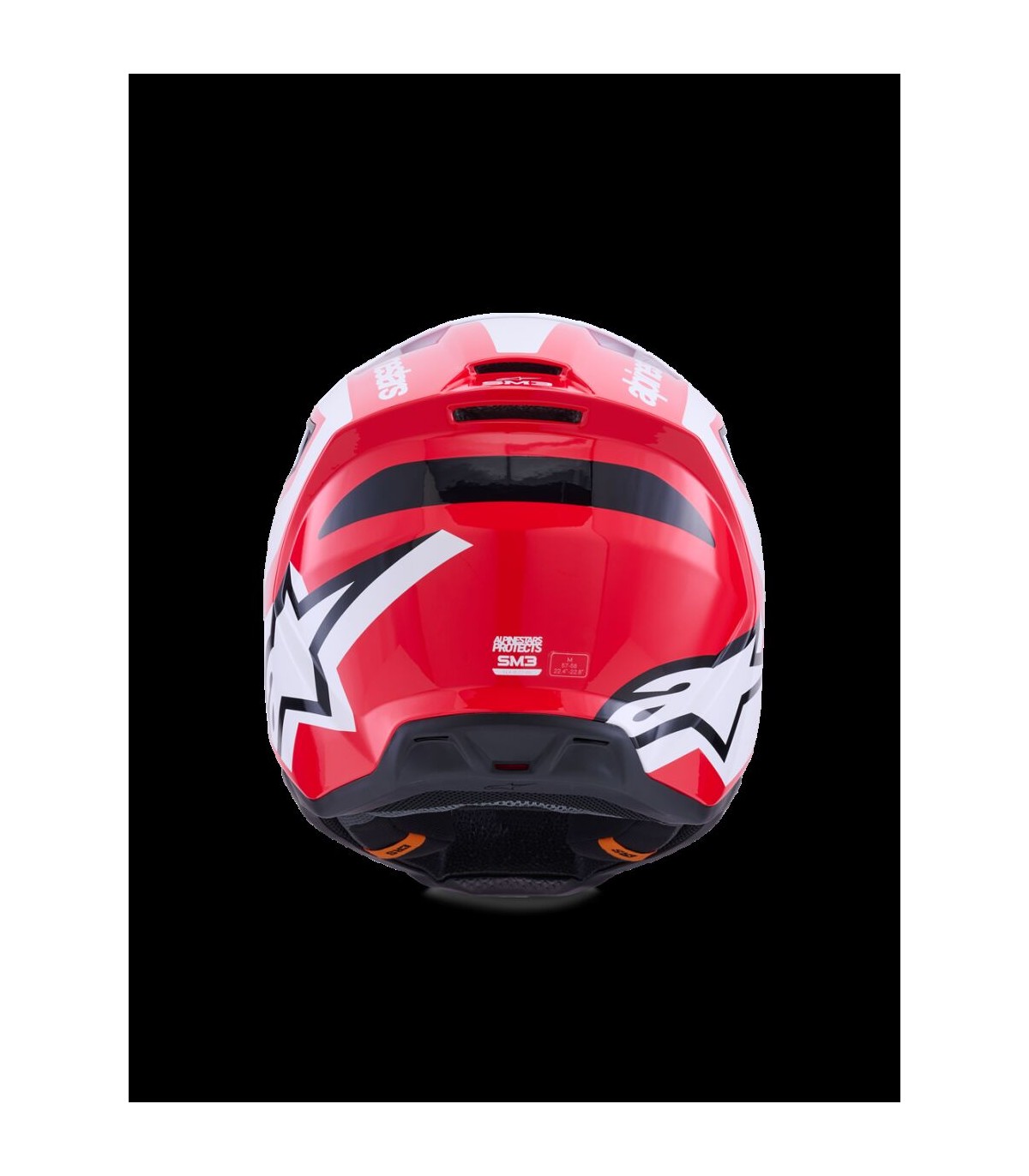 SM3 Heat HelmetThe S-M3 Helmet is engineered for MX, Enduro and Off-road use featuring innovations and technologies optimized for ease of use, comfort and impact performance.Shell construction featuring a thermo-injected shell incorporating a special polymer blend enhanced by varying degrees of thickness, engineered to deliver optimal combination of impact protection and light weight.Alpinestars patented innovative low friction coating is applied to inner part of the main EPS liner to reduce rotational acceleration forces that can result from certain oblique impacts. This layer acts as a slip plane to mimic the brain's own low friction cerebrospinal fluid, which is the body's natural defence against oblique impacts.Patented visor release system ensures visor release with correct pre-determined force, effectively reducing the forces on the neck during an impact.Maximised ventilation and high levels of heat transfer exchange thanks to 10 inlets and 7 exhaust ports.