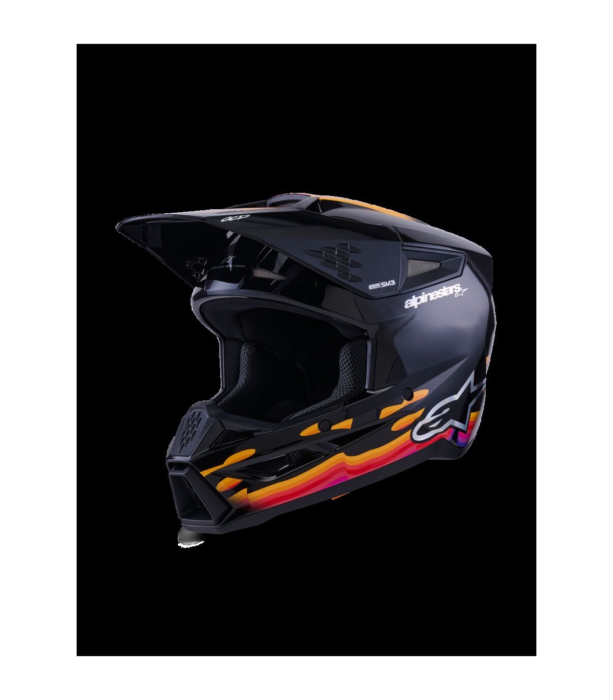 SM3 Force HelmetThe S-M3 Helmet is engineered for MX, Enduro and Off-road use featuring innovations and technologies optimized for ease of use, comfort and impact performance.Shell construction featuring a thermo-injected shell incorporating a special polymer blend enhanced by varying degrees of thickness, engineered to deliver optimal combination of impact protection and light weight.Alpinestars patented innovative low friction coating is applied to inner part of the main EPS liner to reduce rotational acceleration forces that can result from certain oblique impacts. This layer acts as a slip plane to mimic the brain's own low friction cerebrospinal fluid, which is the body's natural defence against oblique impacts.Patented visor release system ensures visor release with correct pre-determined force, effectively reducing the forces on the neck during an impact.Maximised ventilation and high levels of heat transfer exchange thanks to 10 inlets and 7 exhaust ports.