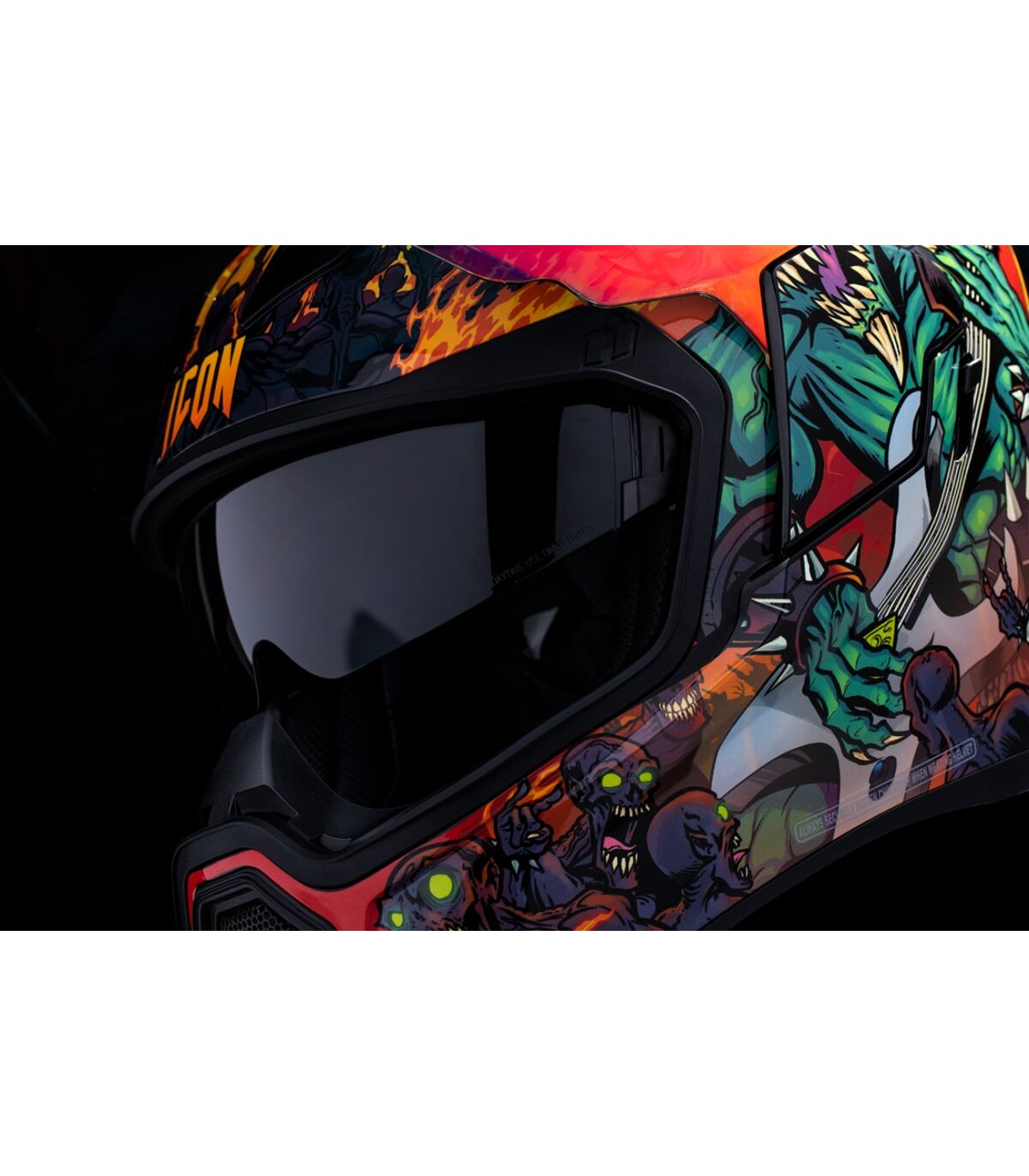 Casque Airflite™ Blegh MIPS®Cache-nez et mentonnière moulés et amoviblesCoque en polycarbonate moulé pour plus de soliditéVisière Dropshield™ anti-buée avec bouton à l'extérieurSystème de refroidissement avec ventilation extrême à deux canaux encastrésNombreux points d’entrée et de sortie surdimensionnésVisière Fliteshield™ anti-buée à remplacement rapide avec plaques latéralesLa visière DropShield™ ne doit être utilisée que lorsque l’accessoire frontal de casque est complètement fermé.Doublure Hydradry™ anti-humidité et amovibleBrille dans l’obscuritéPoches de haut-parleur internes compatibles avec l'appareil R.A.U. Bluetooth d’ICONAvec visières Fliteshield™ anti-buée transparente et RST coucher de soleil