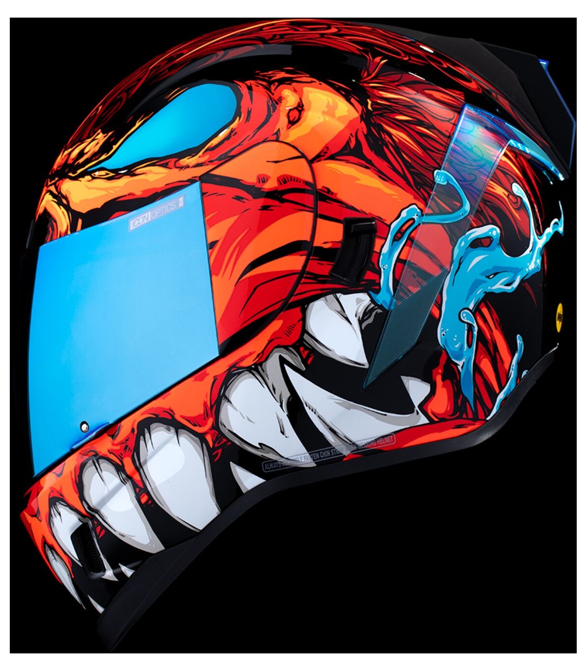 Casque Airform™ Manik’RR MIPS®Système de ventilation en continuVisière ICON Optics™ anti-buée avec mécanisme Rapid-Release™Coque en polycarbonate moulé pour plus de soliditéGéométrie du flux d’air interneTour de cou sculptéSystème de verrouillage sécurisé de visière Prolock™Visière Dropshield™ interne avec bouton à l’extérieurLa visière DropShield™ ne doit être utilisée que lorsque l’accessoire frontal de casque est complètement fermé.Cache-nez moulé amovibleDoublure Hydradry™ anti-humidité en trois pièces amoviblePoches de haut-parleur internes compatibles avec l'appareil R.A.U. Bluetooth d’ICONAvec visière DropShield™ fumé foncé et Speedfin™ Rubatone noirAvec visières Optics™ transparente et RST bleue