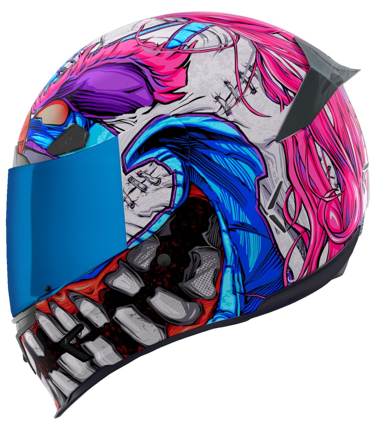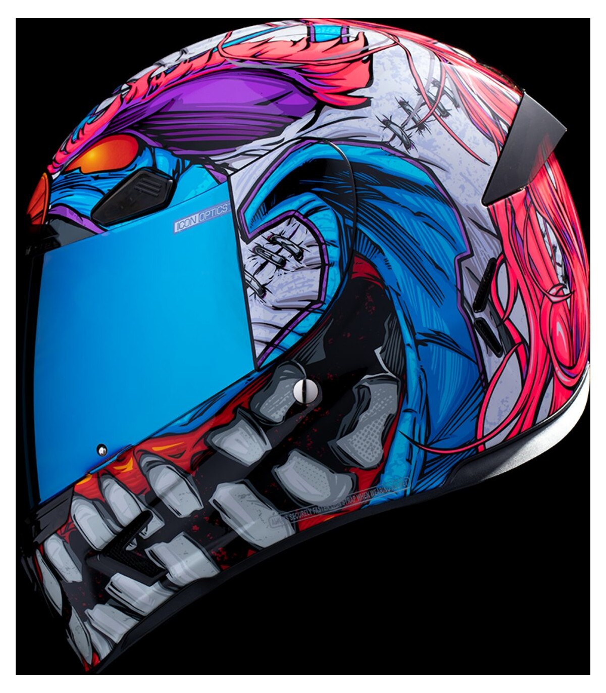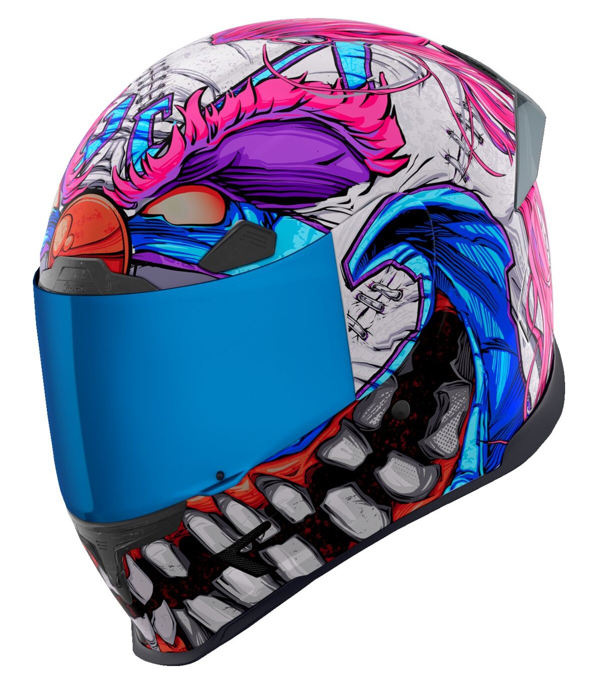 Casque Airframe Pro™ Krazy Klown 2Tour de cou sculpté empêchant au mieux le contact avec la veste/combinaisonSystème de verrouillage sécurisé de visière Prolock™Sous-casque modulaire à cinq pièces avec technologie anti-humidité Hydradry™Visière ICON Optics™ anti-buée avec mécanisme Rapid-Release™Aérations discrètes sur toute la coqueAérations dans la doublure à hauteur du frontCache-nez et mentonnière amoviblesCoque en plastique renforcé de fibre de verre fabriquée à la main