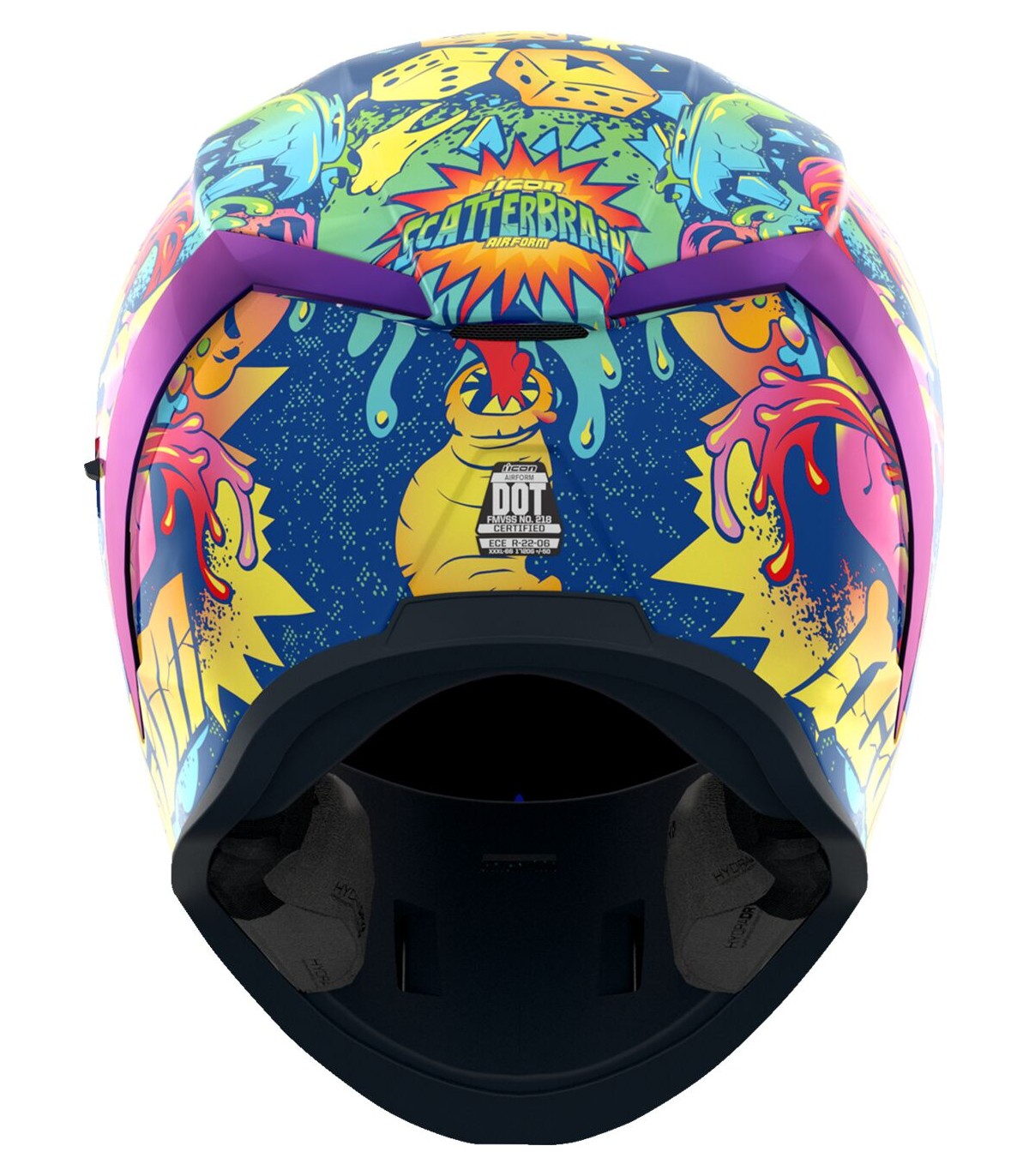 Casque Airform™ Scatterbrain MIPS®Coque en polycarbonate moulé pour plus de soliditéGéométrie du flux d’air interneSystème de ventilation en continuTour de cou sculptéVisière Icon Optics™ anti-buée avec mécanisme Rapid-Release™Système de verrouillage sécurisé de visière Prolock™Visière Dropshield™ interne avec bouton à l’extérieurLa visière DropShield™ ne doit être utilisée que lorsque l’accessoire frontal de casque est complètement fermé.Cache-nez moulé amovibleDoublure Hydradry™ anti-humidité en trois pièces amoviblePoches de haut-parleur interne compatibles avec dispositif Bluetooth d’ICONVisière Dropshield fumé foncé incluseAvec visières Optics™ transparente et RST violette
