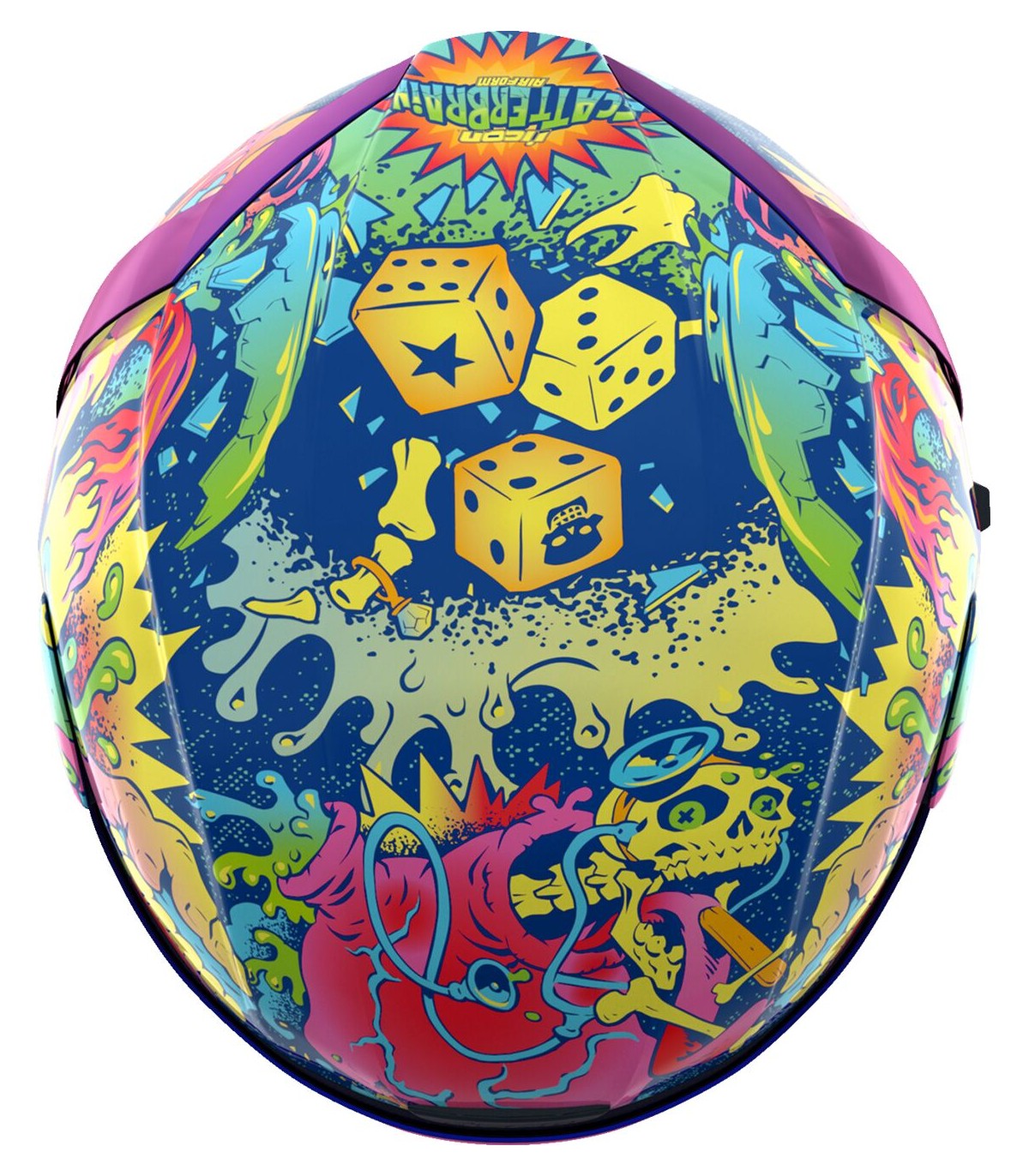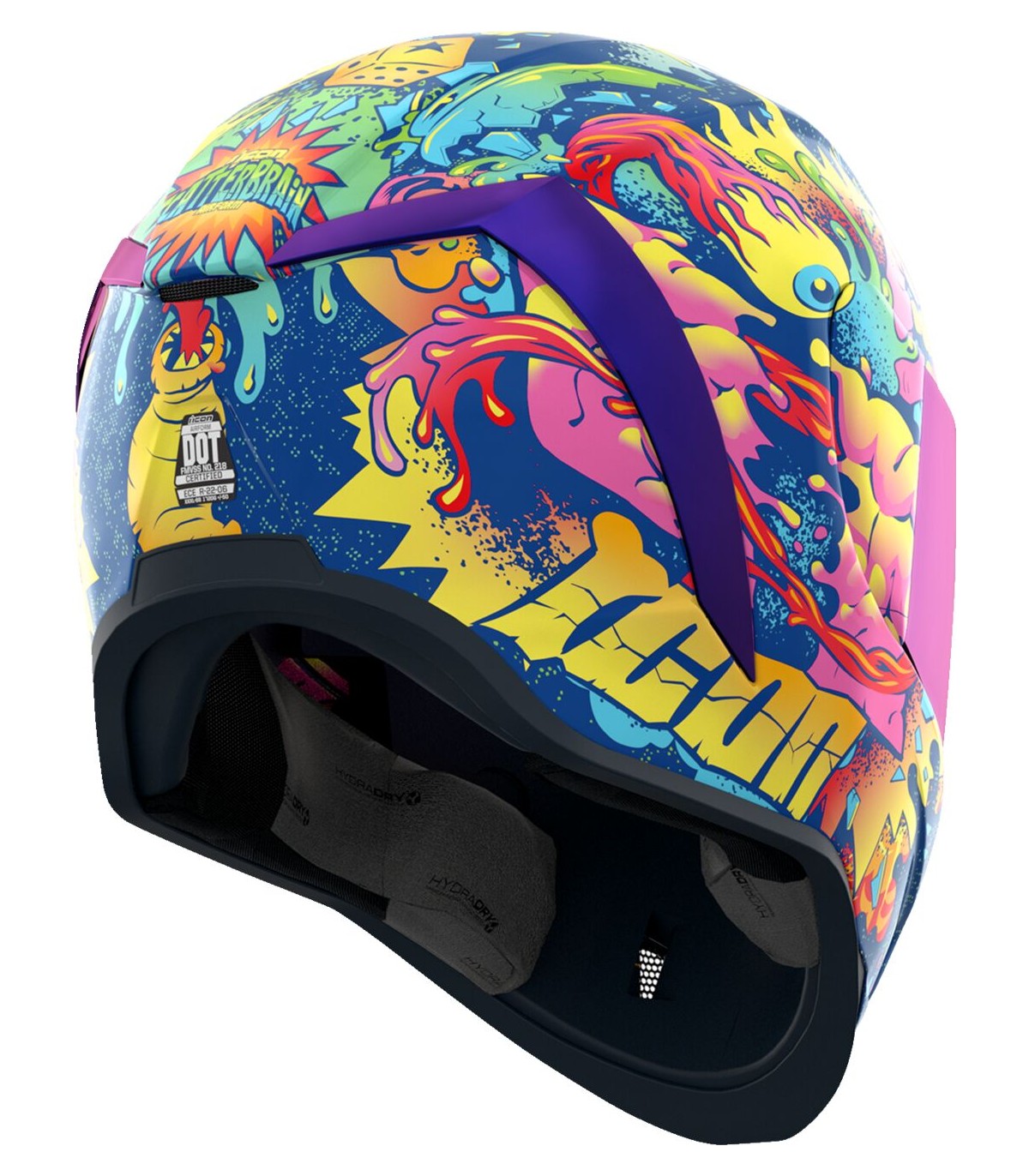 Casque Airform™ Scatterbrain MIPS®Coque en polycarbonate moulé pour plus de soliditéGéométrie du flux d’air interneSystème de ventilation en continuTour de cou sculptéVisière Icon Optics™ anti-buée avec mécanisme Rapid-Release™Système de verrouillage sécurisé de visière Prolock™Visière Dropshield™ interne avec bouton à l’extérieurLa visière DropShield™ ne doit être utilisée que lorsque l’accessoire frontal de casque est complètement fermé.Cache-nez moulé amovibleDoublure Hydradry™ anti-humidité en trois pièces amoviblePoches de haut-parleur interne compatibles avec dispositif Bluetooth d’ICONVisière Dropshield fumé foncé incluseAvec visières Optics™ transparente et RST violette