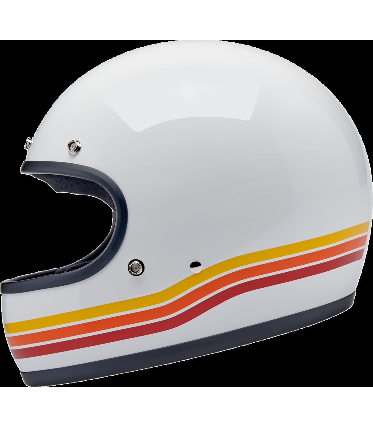 Gringo Sunset Spectrum HelmetInjection-molded ABS outer shell is lightweight and resistant to impactsDual Density expanded polystyrene (EPS) internal safety shell absorbs and dissipates impact energy without compromising comfortMolded urethane chin bar pad dissipates energy during front impactChin strap features brushed fleece Lycra touchpoints for comfort, and a D-ring retention system with red quick-release pull tab for speedy removalRemovable/replaceable comfort liner and cheek pads are constructed with fleece Lycra and open-cell foam padding to absorb and evaporate perspirationBioFoam head form panel and ventilated polyester padding maximize airflow around your head to ensure coolness and comfortMolded EPS ear pockets fit select aftermarket audio accessories